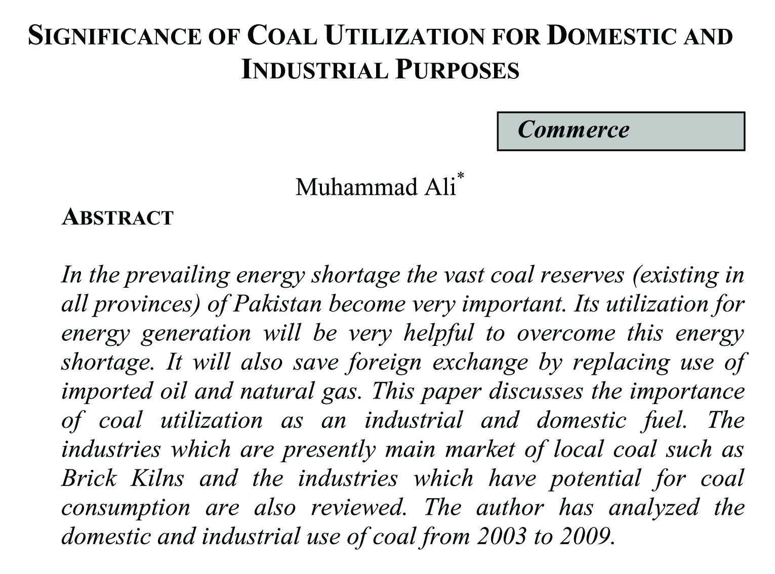 SIGNIFICANCE OF COAL UTILIZATION FOR DOMESTIC AND INDUSTRIAL PURPOSES (abstract)