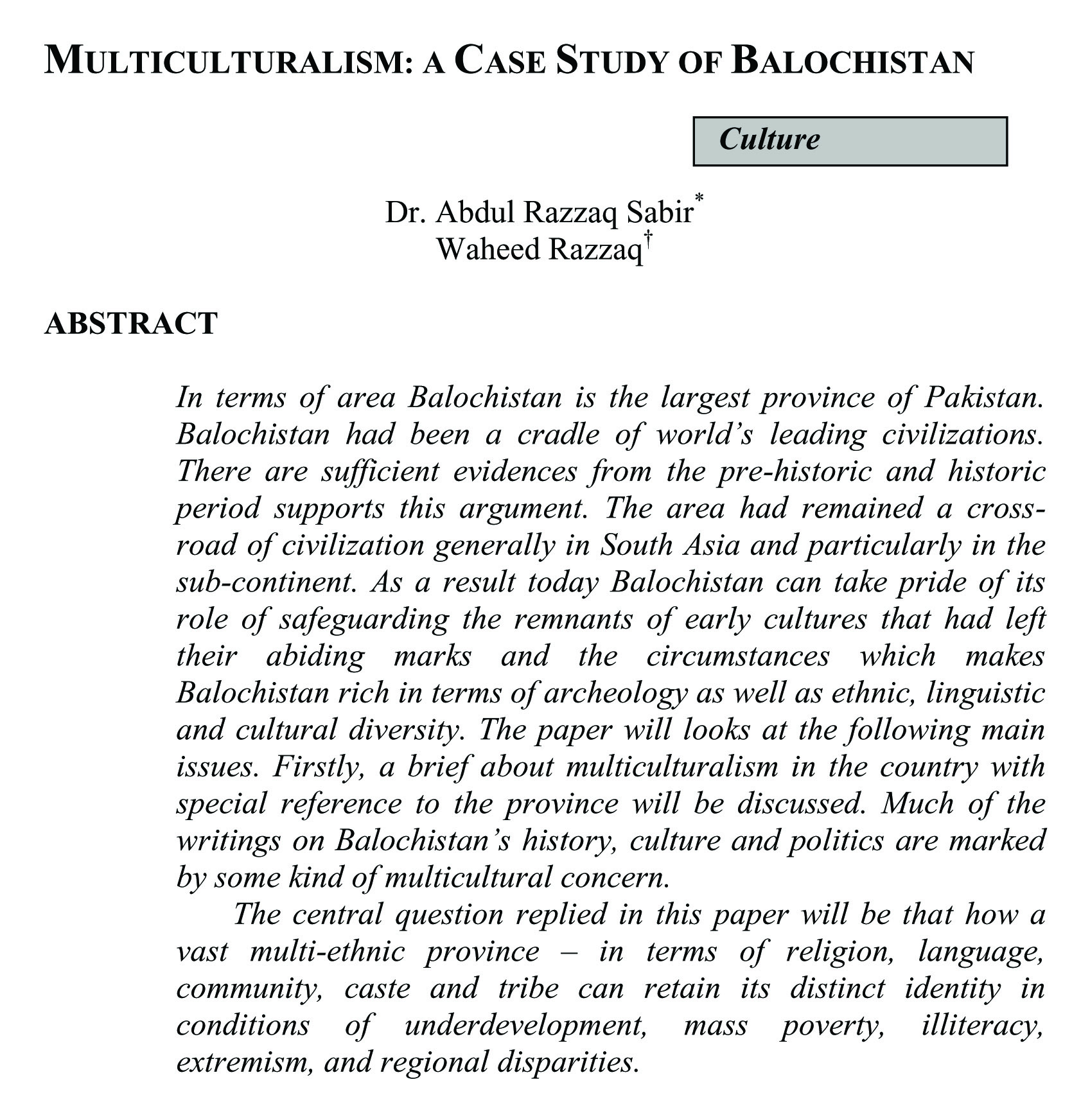 MULTICULTURALISM: A CASE STUDY OF BALOCHISTAN (abstract)
