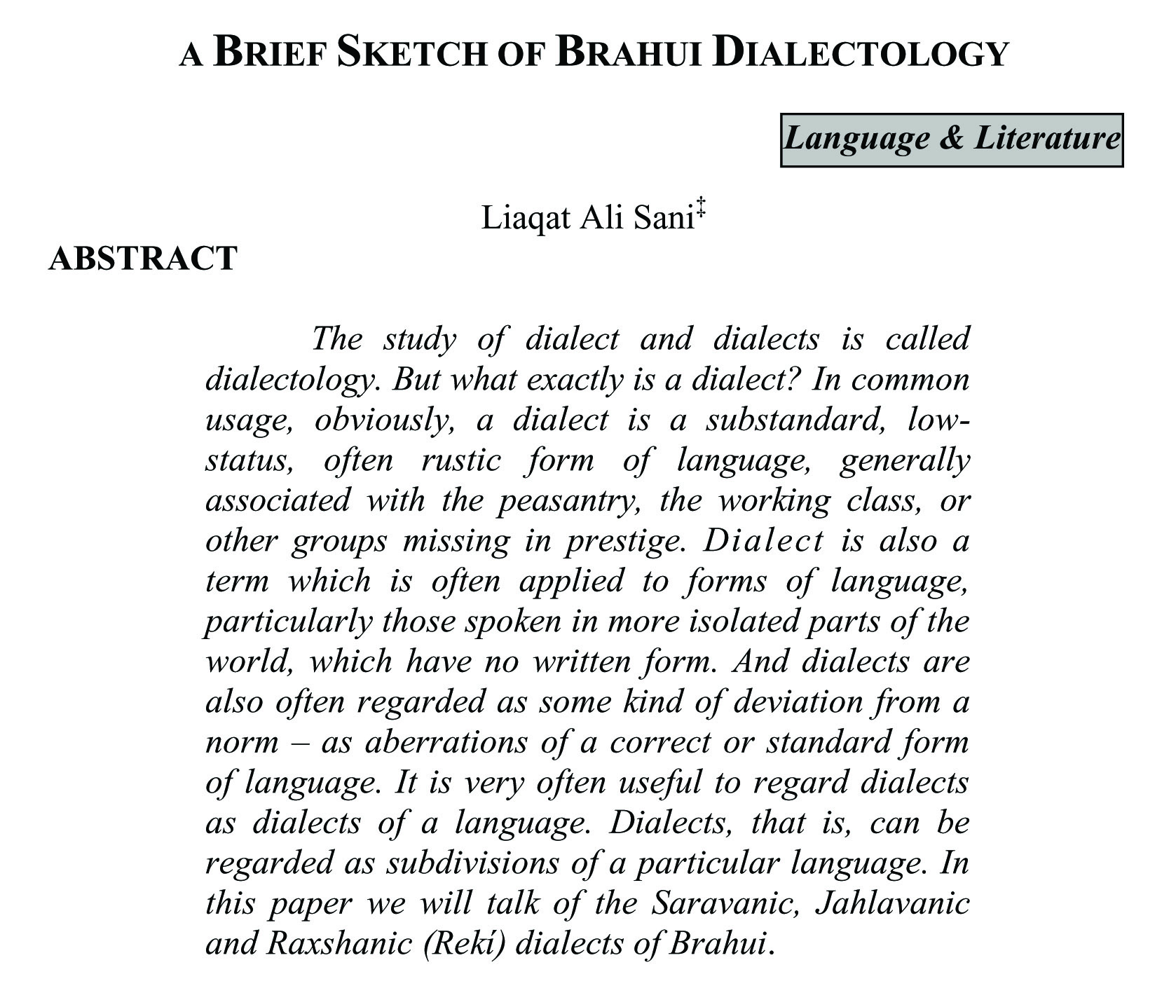 A BRIEF SKETCH OF BRAHUI DIALECTOLOGY (abstract)