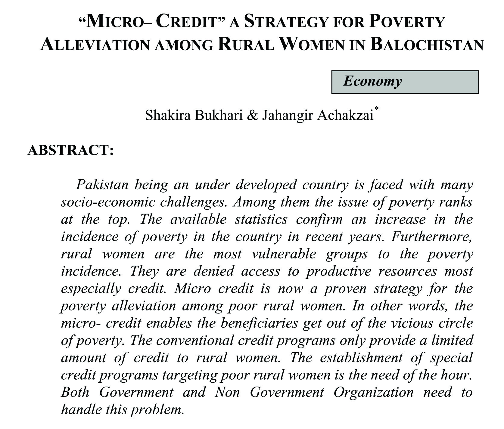 "MICRO-CREDIT" A STRATEGY FOR POVERTY ALLEVIATION AMONG RURAL WOMEN IN BALOCHISTAN (abstract)