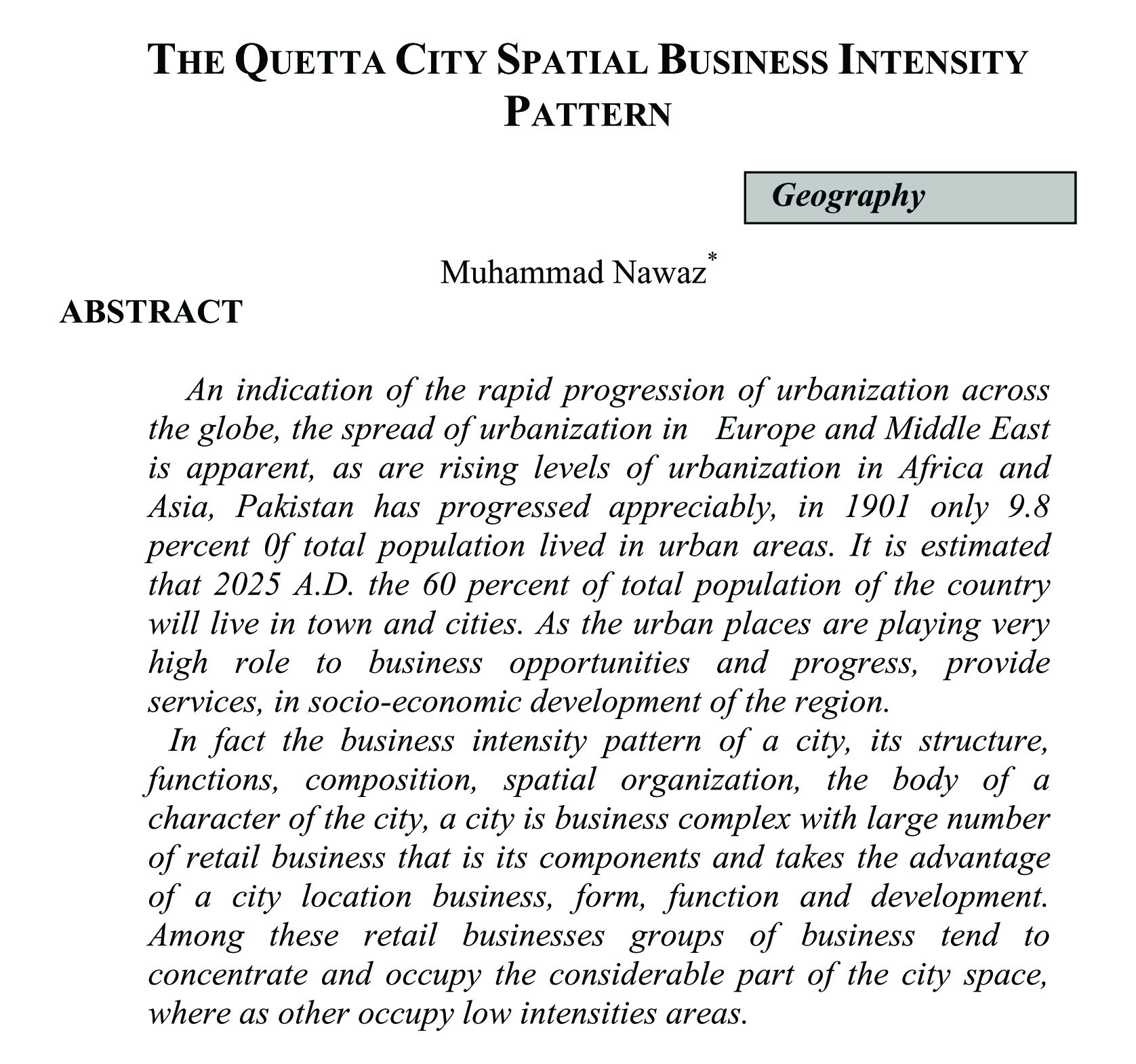 THE QUETTA CITY SPATIAL BUSINESS INTENSITY PATTERN (abstract)