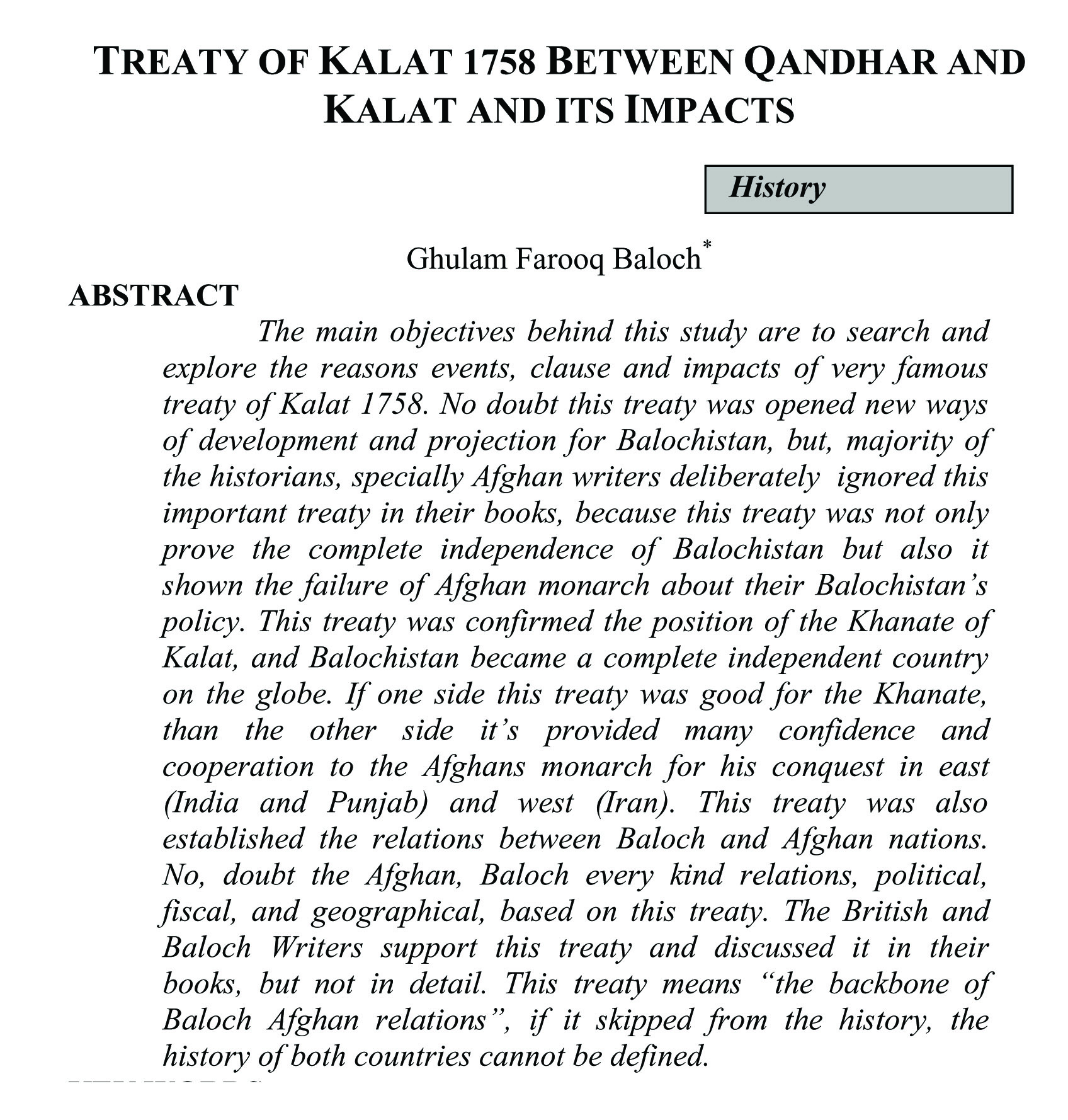 TREATY OF KALAT 1758 BETWEEN QANDHAR AND KALAT AND ITS IMPACTS (abstract)