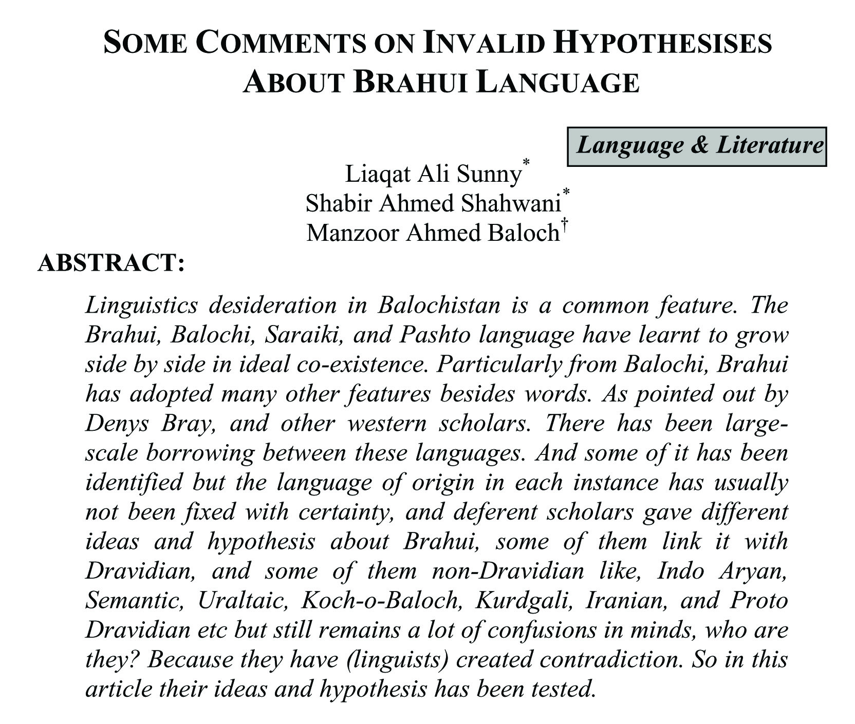 SOME COMMENTS ON INVALID HYPOTHESISES ABOUT BRAHUI LANGUAGE (abstract)