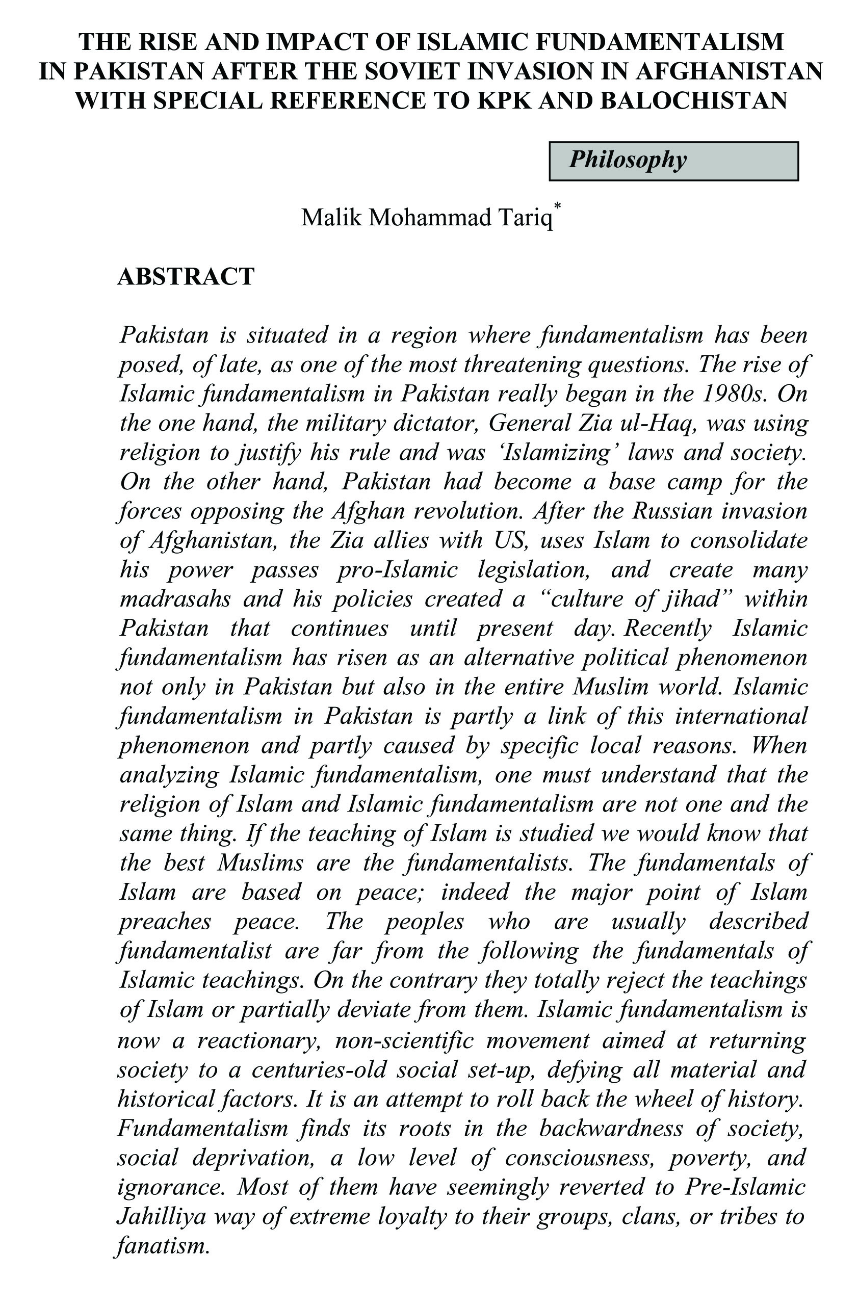 THE RISE AND IMPACT OF ISLAMIC FUNDAMENTALISM IN PAKISTAN AFTER THE SOVIET