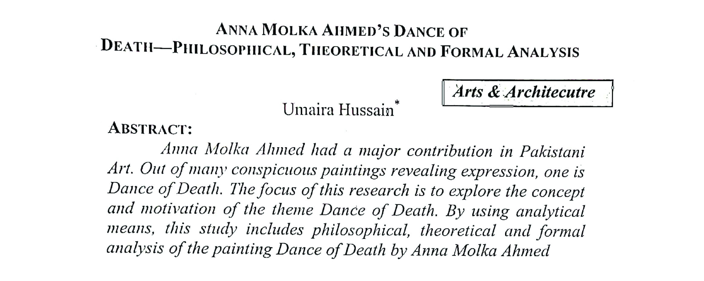 ANNA MOLKA AHMED'S DANCE OF DEATH-PHILOSOPHICAL, THEORETICAL AND FORMAL ANALYSIS (abstract)