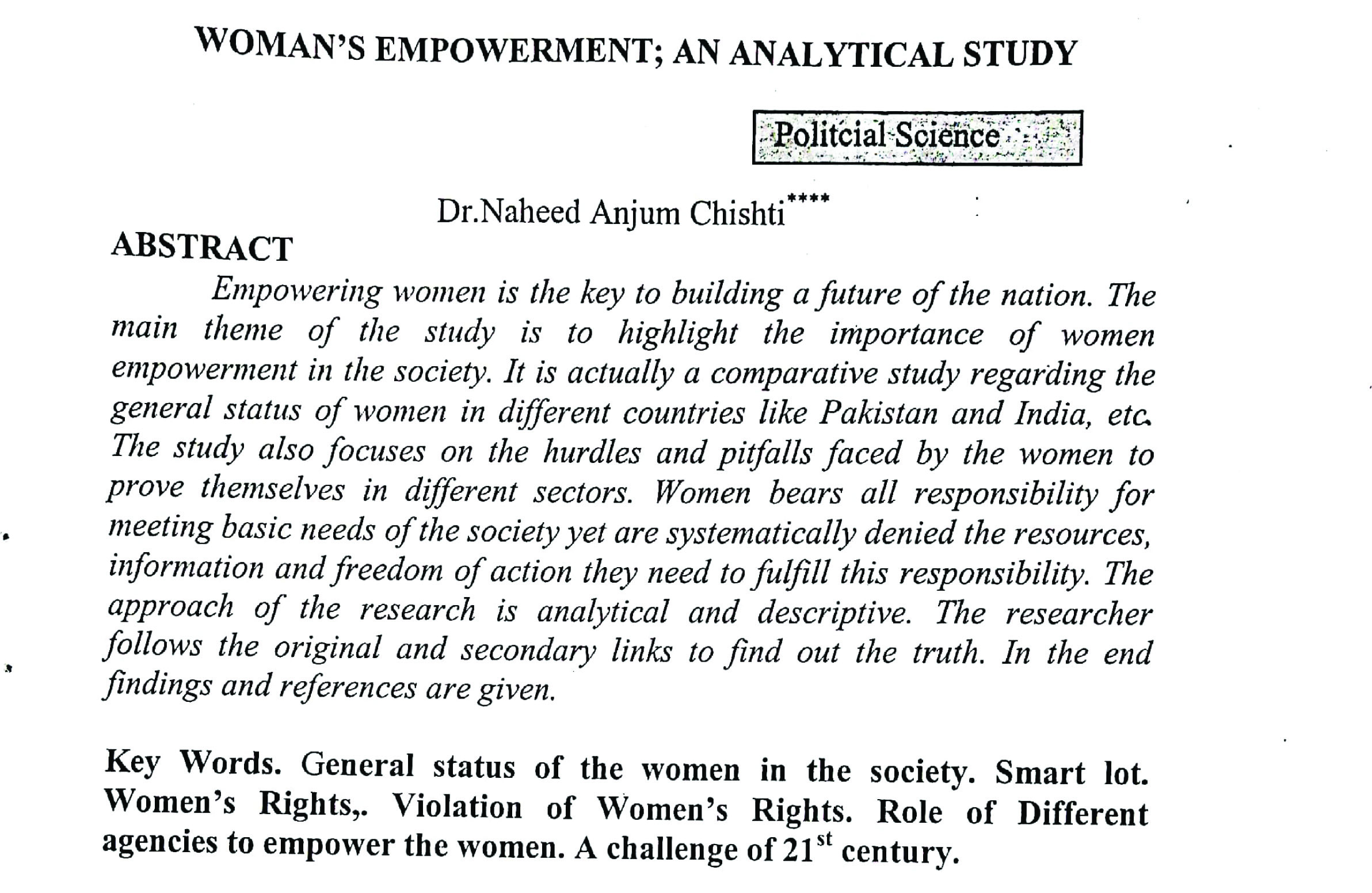 WOMAN'S EMPOWERMENT; AN ANALYTICAL STUDY (abstract)