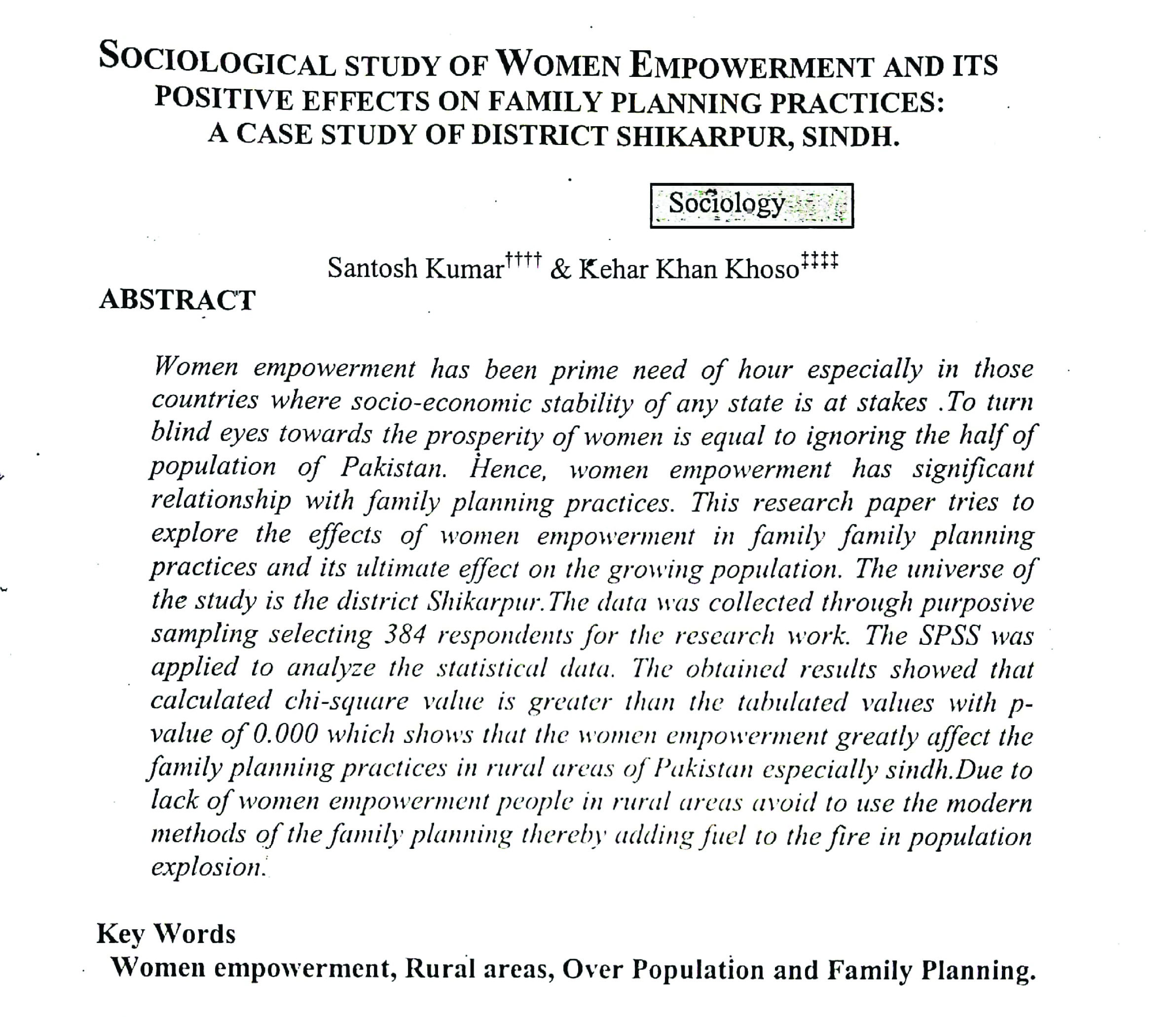 SOCIOLOGICAL STUDY OF WOMEN EMPOWERMENT AND ITS POSITIVE EFFECTS ON FAMILY