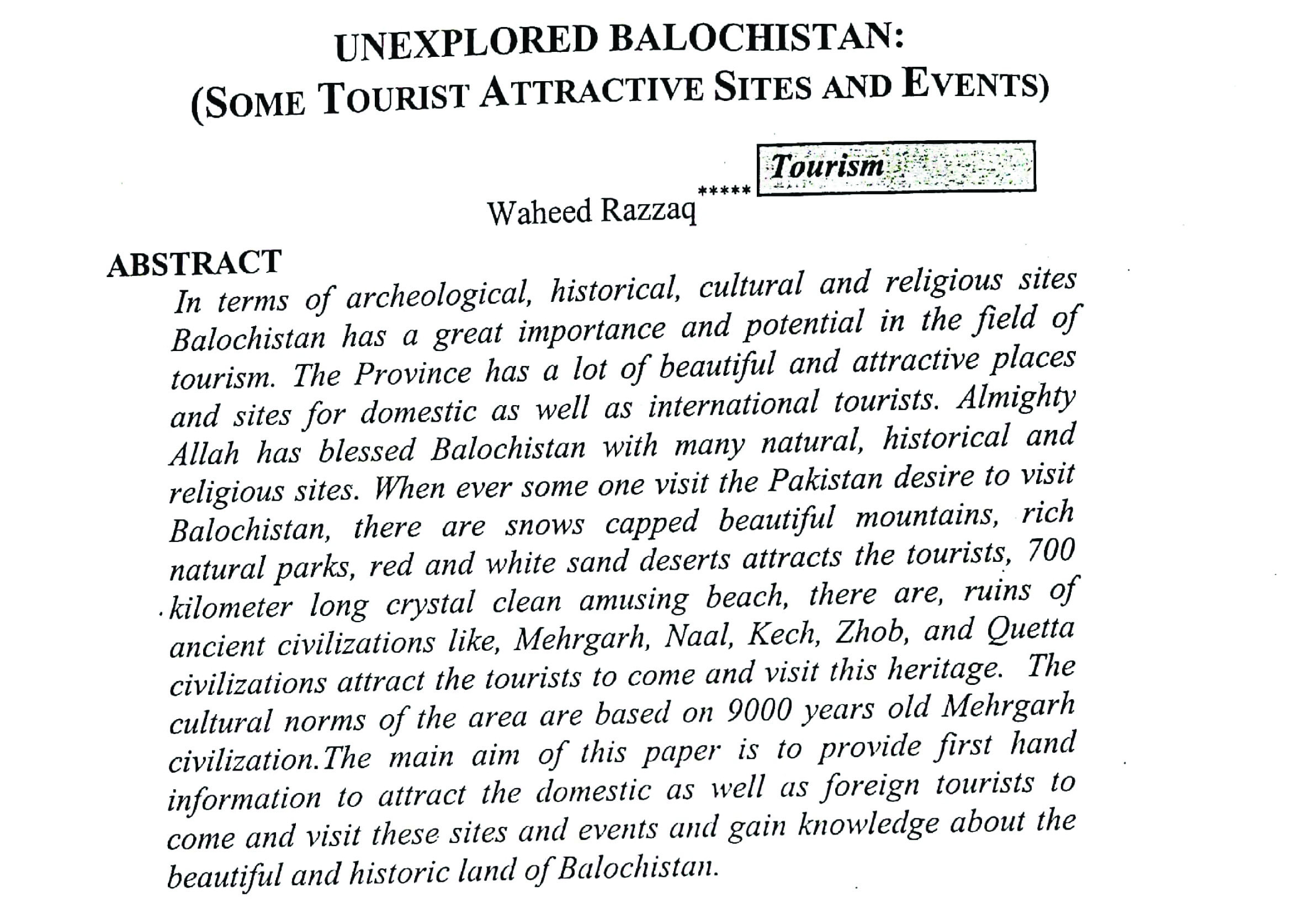 UNEXPLORED BALOCHISTAN: (SOME TOURIST ATTRACTIVE SITES AND EVENTS) (abstract)