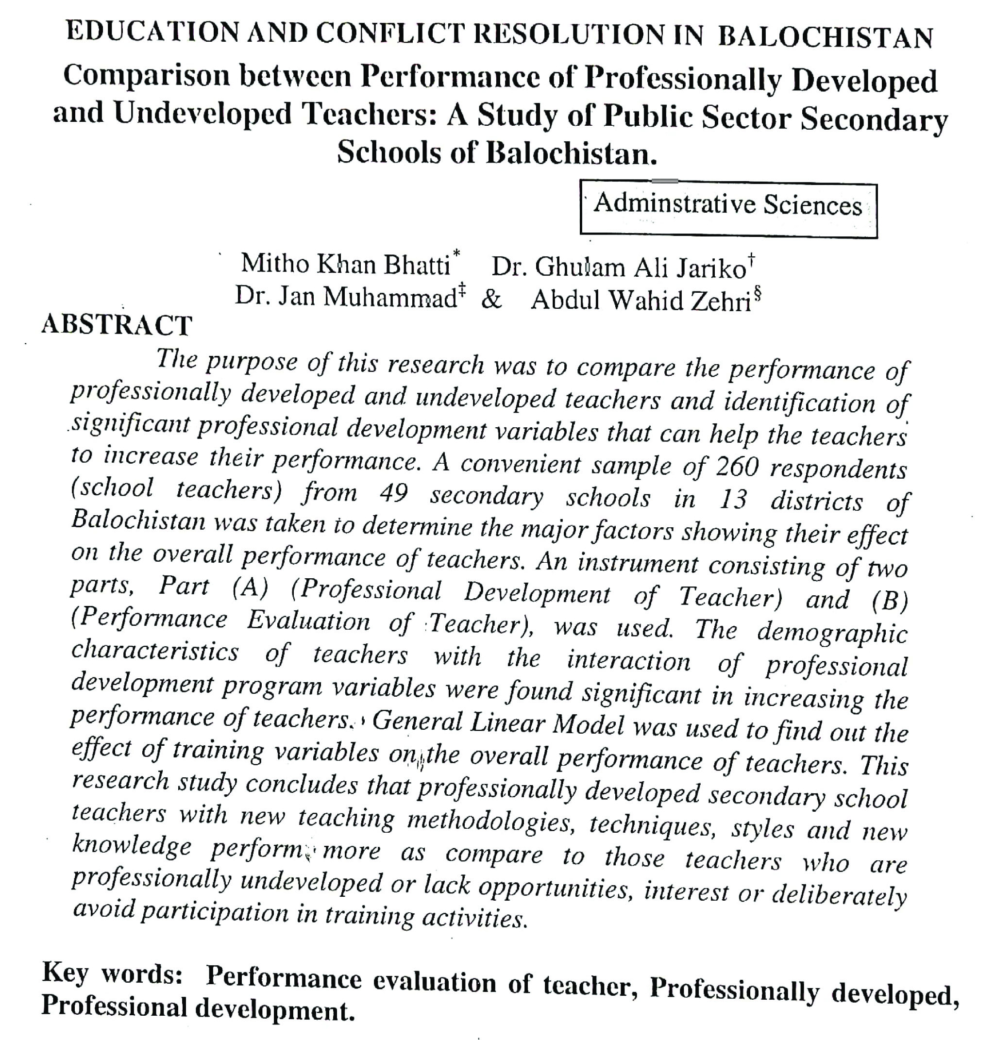 EDUCATION AND CONFLICT RESOLUTION IN BALOCHISTAN Comparison between Performance