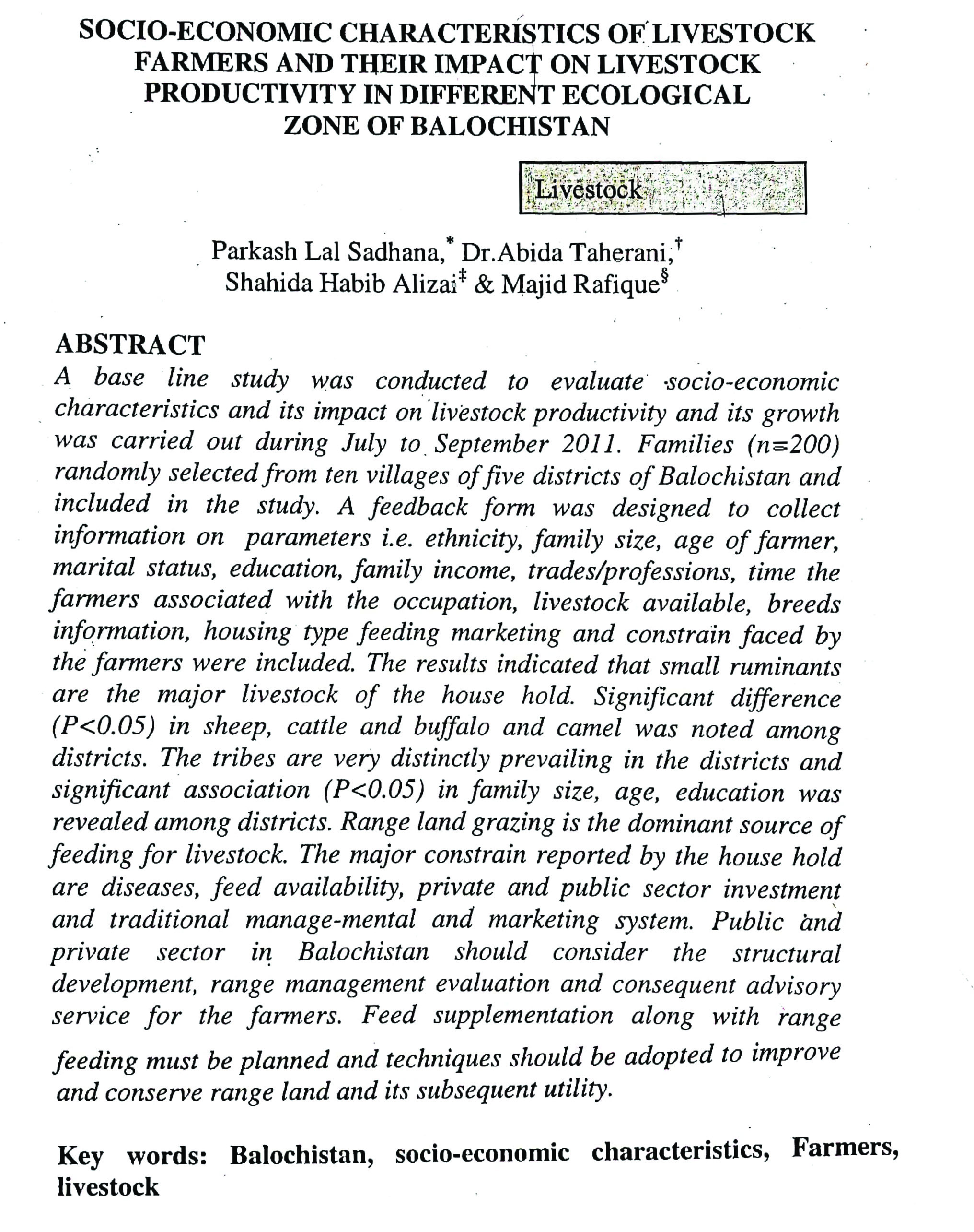 SOCIO-ECONOMIC CHARACTERISTICS OF 'LIVESTOCK FARMERS AND THEIR IMPACT ON