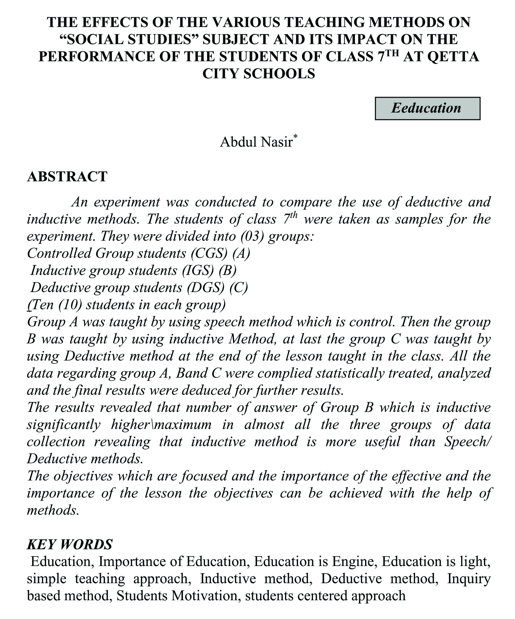 VARIOUS TEACHING METHODS ON "SOCIAL STUDIES" SUBJECT AND ITS IMPACT ON THE