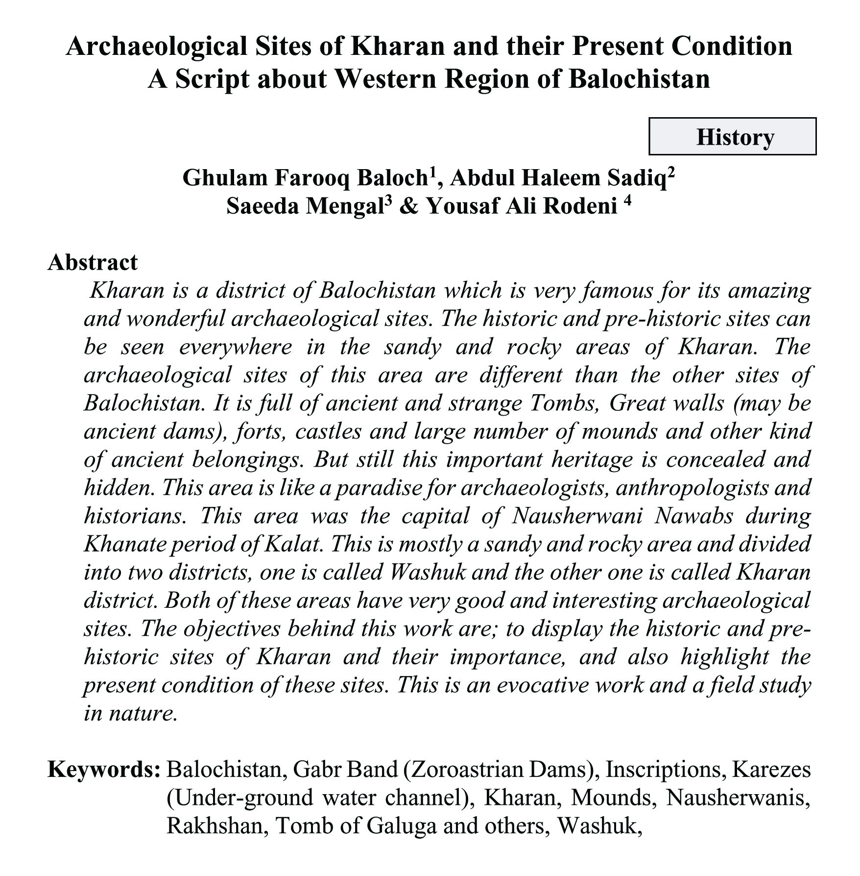 Archaeological Sites of Kharan and their Present Condition A Script about Western Region of Balochistan (abstract)