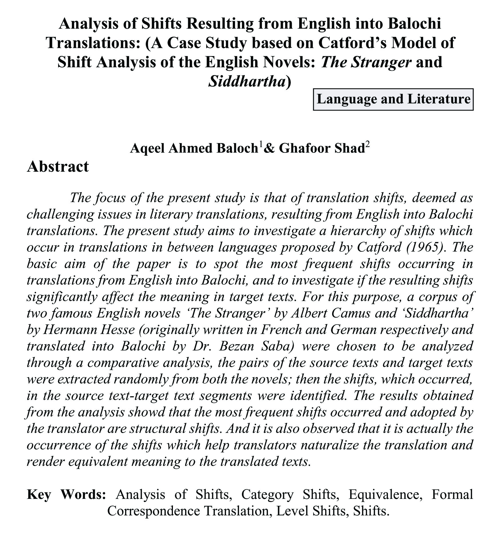Ghulam Farooq Baloch, Abdul Haleem Sadiq, Saeeda Mengal, Yousaf Ali Rodeni pp.41-60 |
