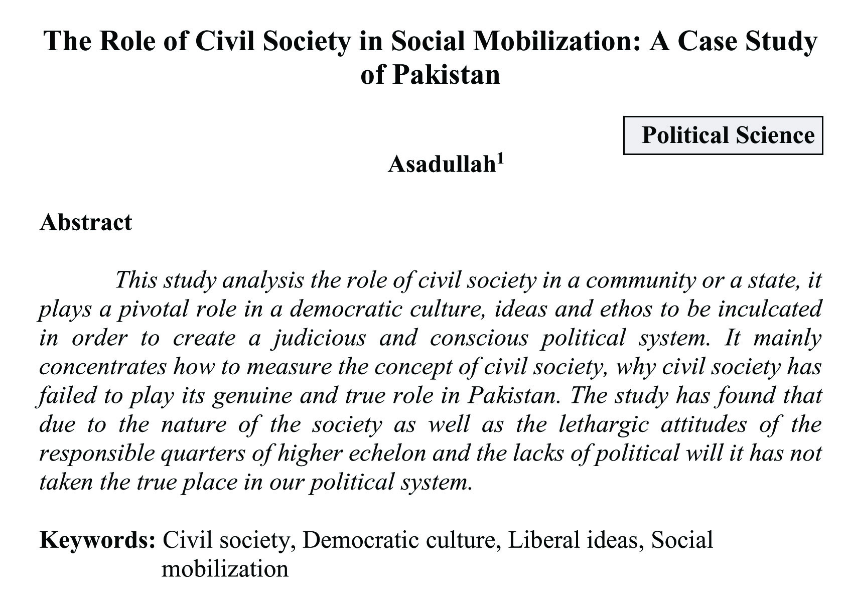 The Role of Civil Society in Social Mobilization: A Case Study of Pakistan (abstract)