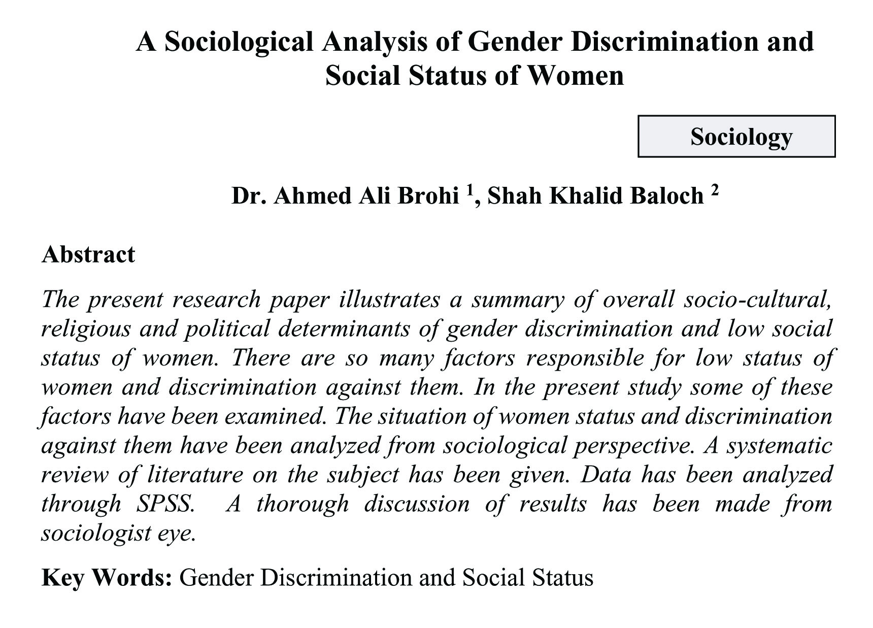 A Sociological Analysis of Gender Discrimination and Social Status of Women (abstract)