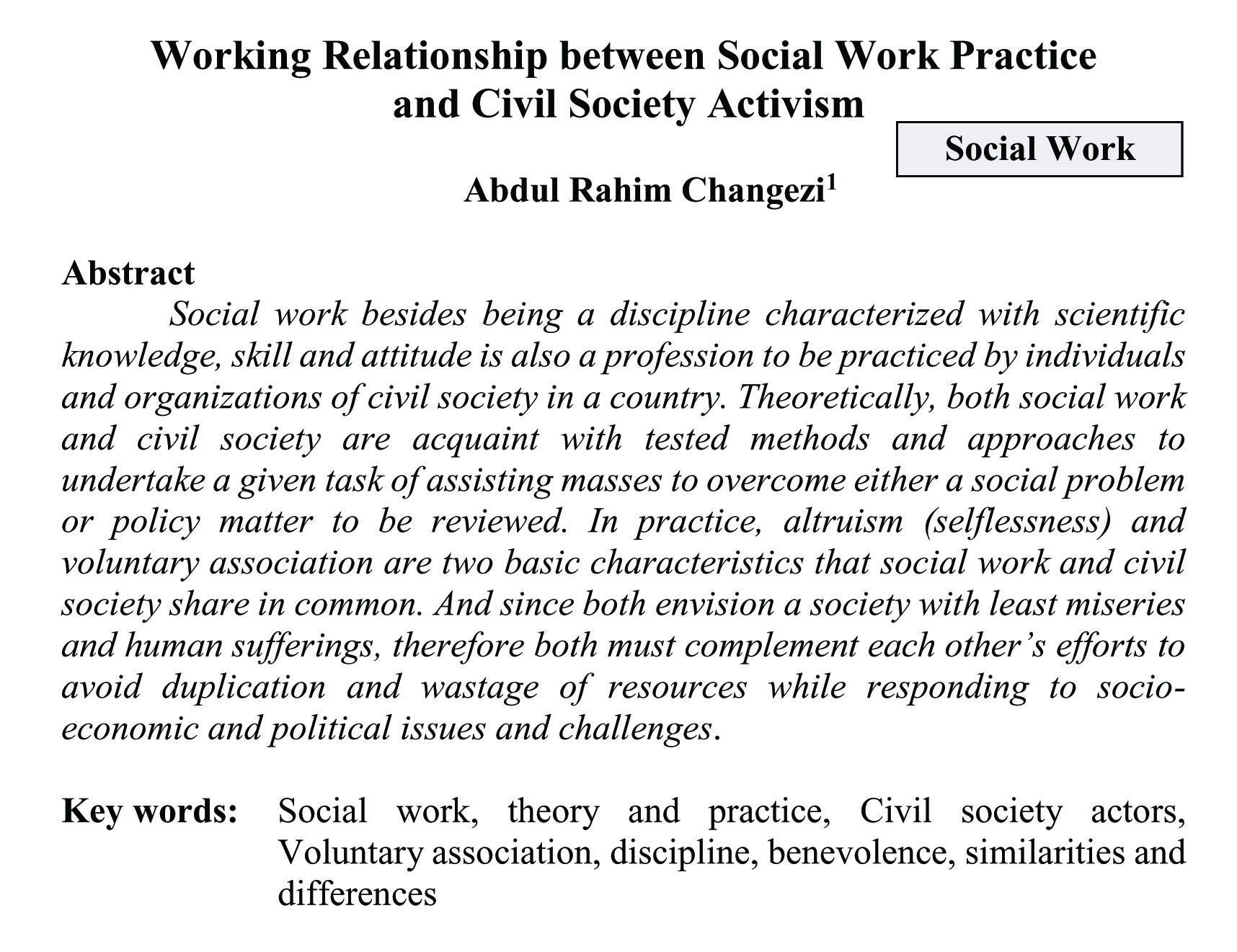 Working Relationship between Social Work Practice and Civil Society Activism (abstract)