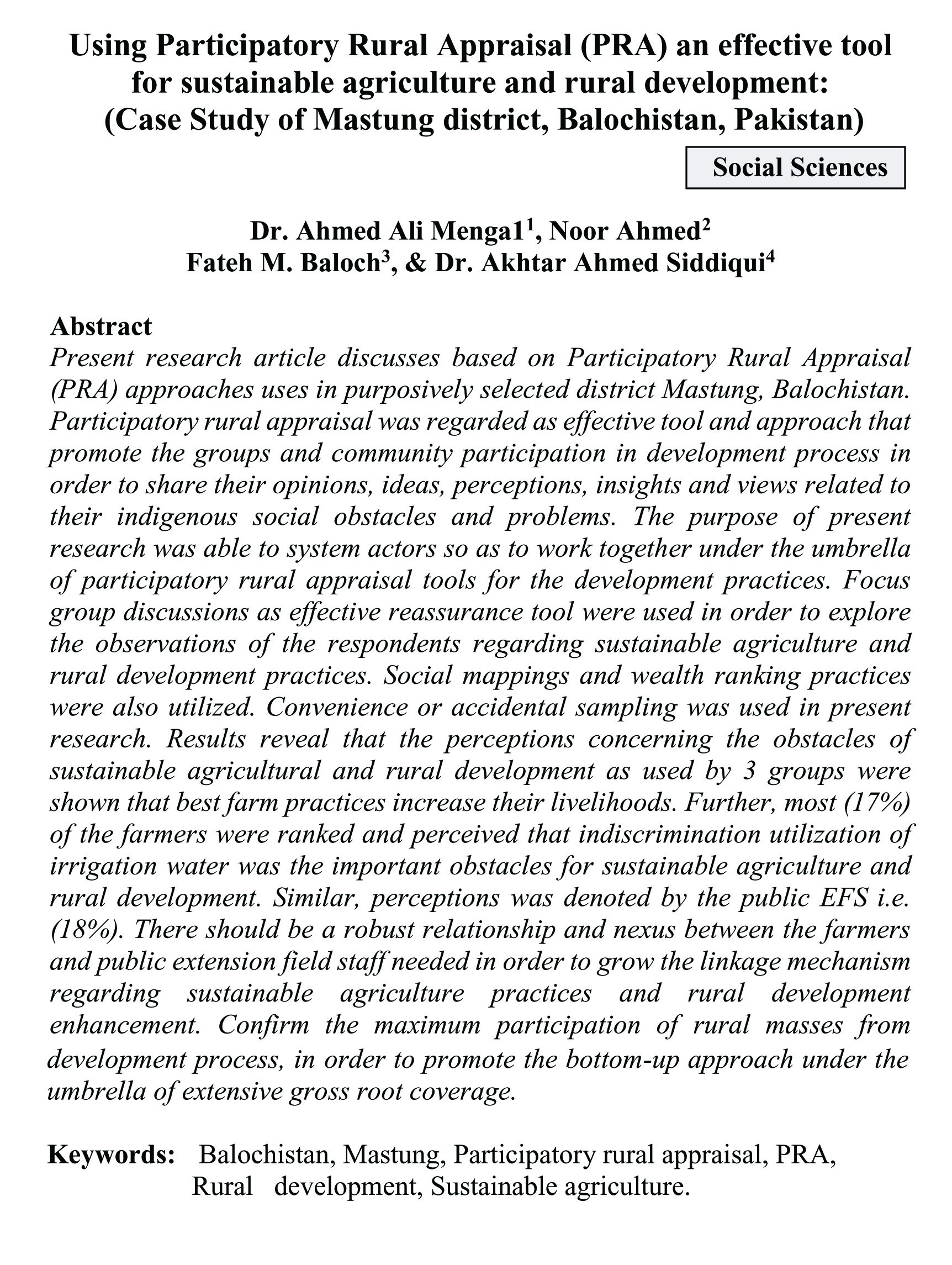 Dr. Hakim Ali Mahesar, Abdul Wahid Zehri, Afifa Zafar, Dr. Naveed Iqbal Chaudhry pp.11-32 |