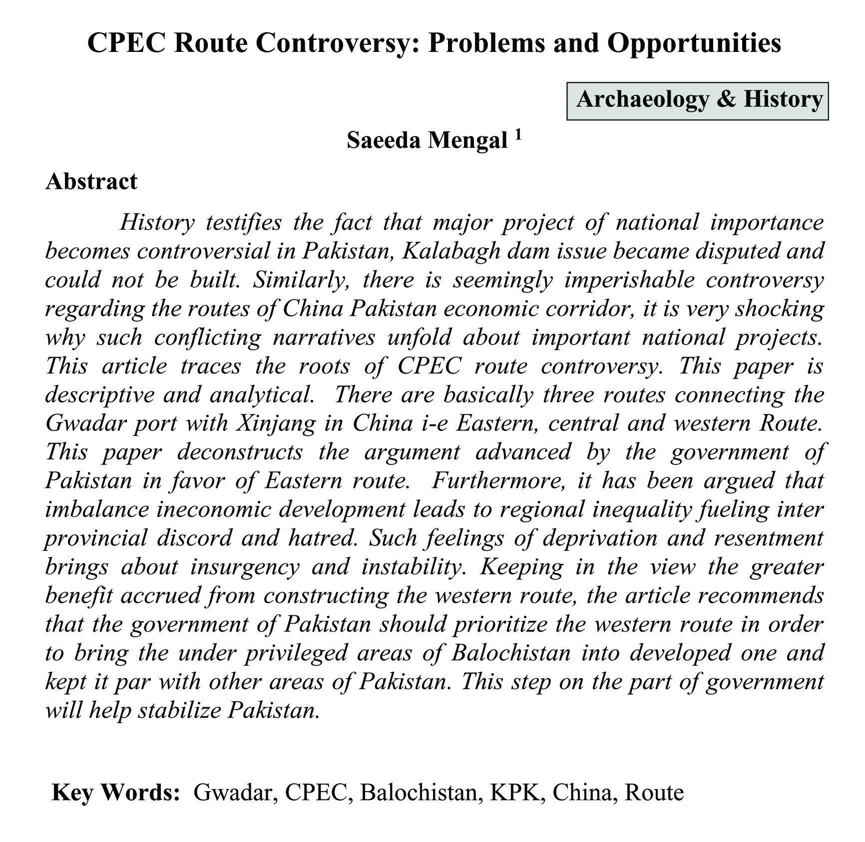 CPEC Route Controversy: Problems and Opportunities (abstract)