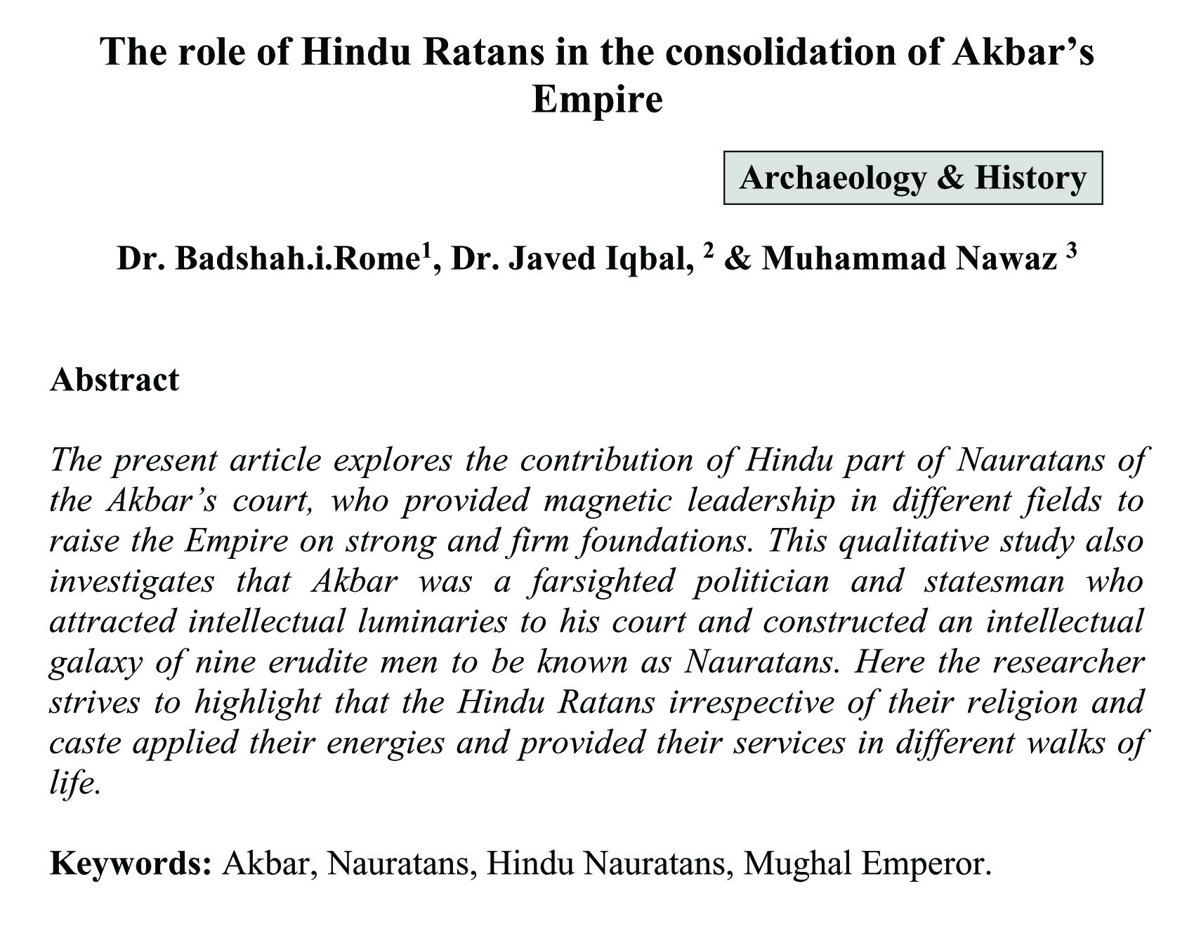 The role of Hindu Ratans in the consolidation of Akbar's Empire (abstract)