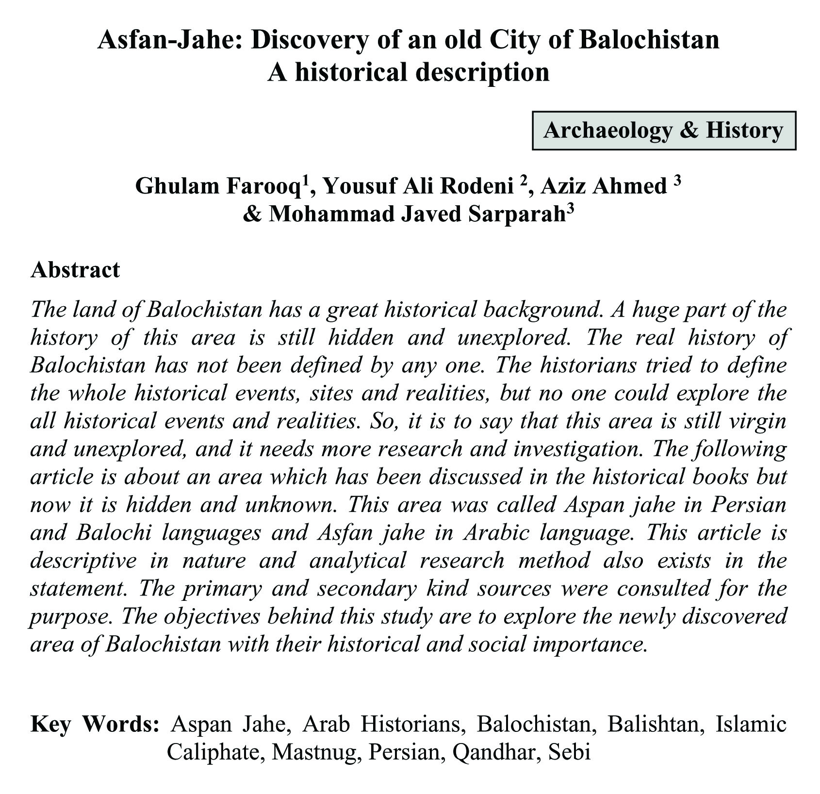 Asfan-Jahe: Discovery of an old City of Balochistan A historical description (abstract)