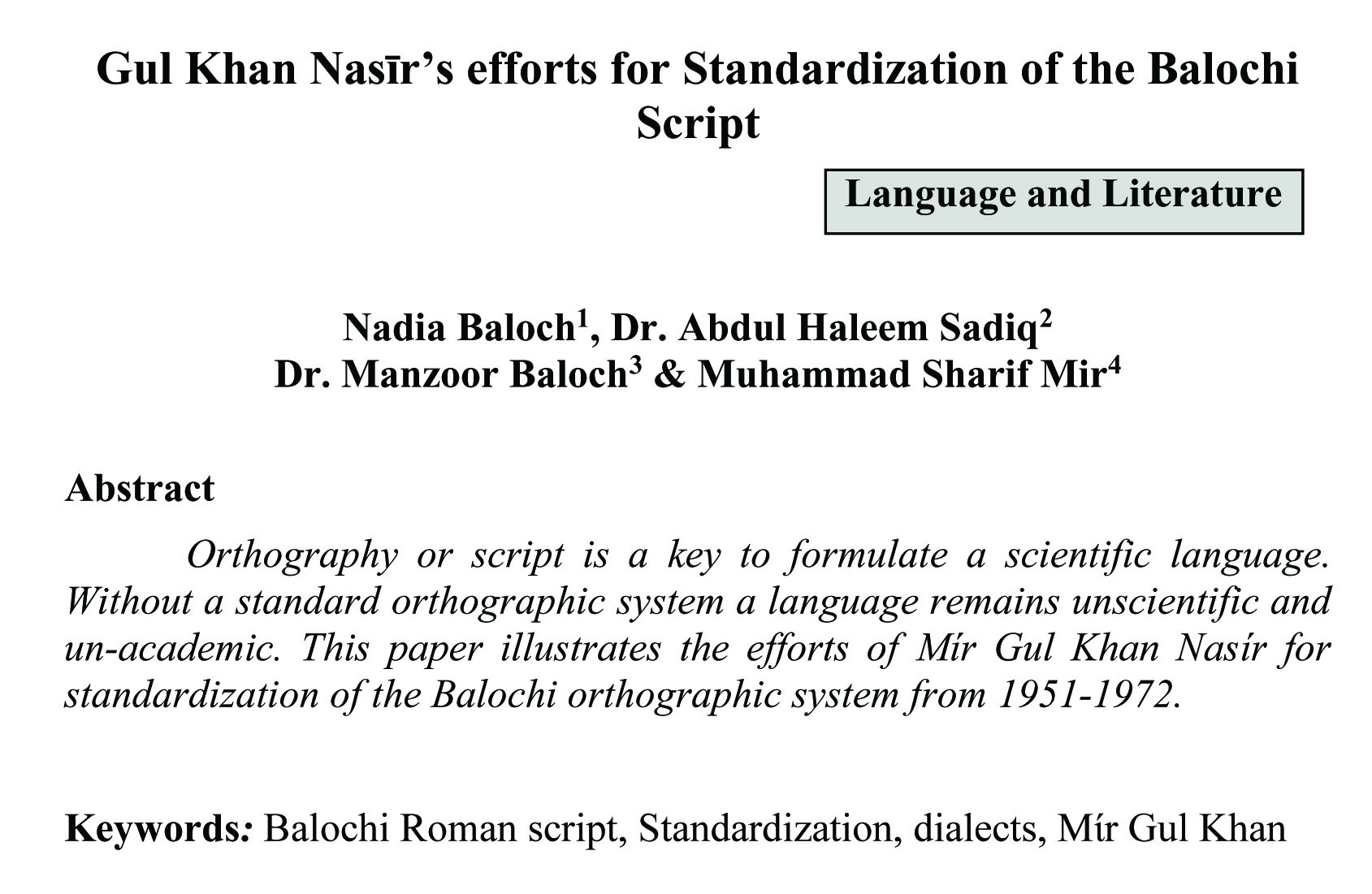 Gul Khan Nasīr's efforts for Standardization of the Balochi Script (abstract)