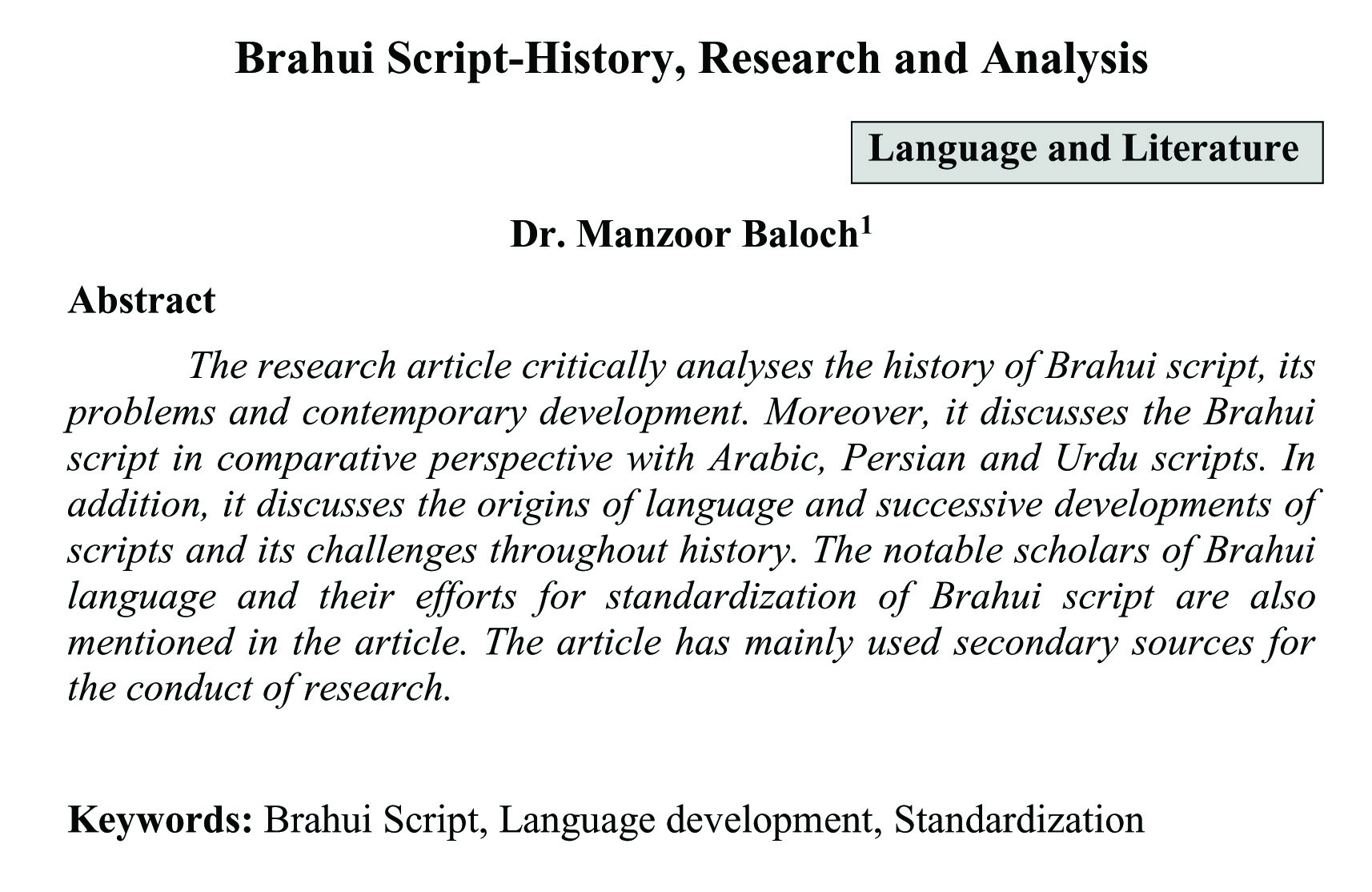 Brahui Script-History, Research and Analysis (abstract)