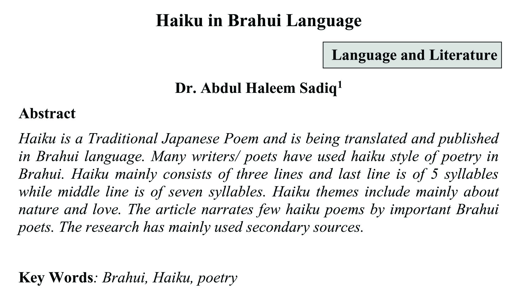 Haiku in Brahui Language (abstract)
