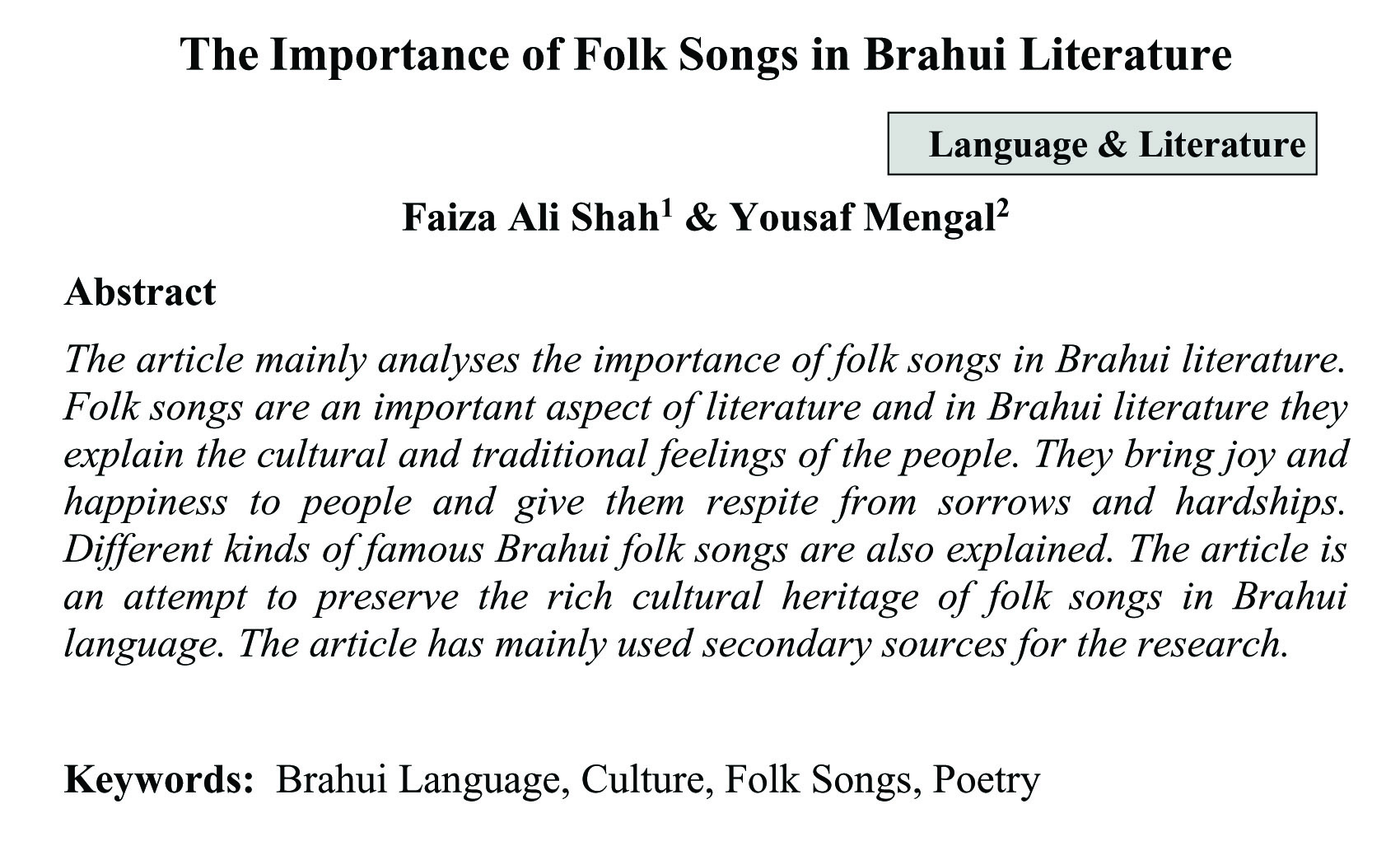 The Importance of Folk Songs in Brahui Literature (abstract)
