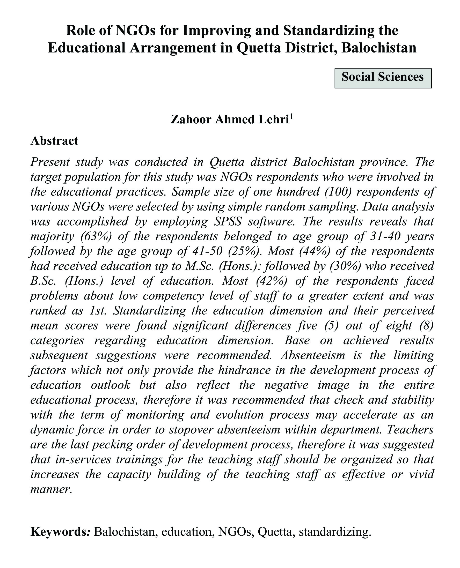 Role of NGOs for Improving and Standardizing the Educational Arrangement in Quetta District, Balochistan (abstract)