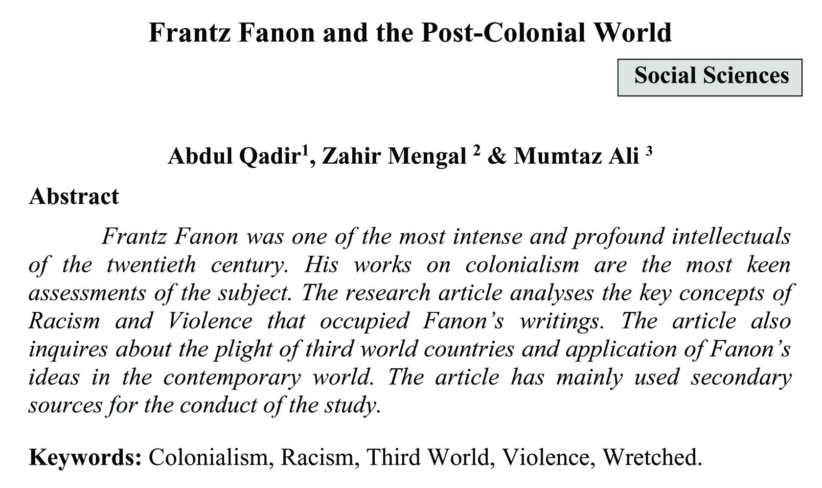 Frantz Fanon and the Post-Colonial World (abstract)