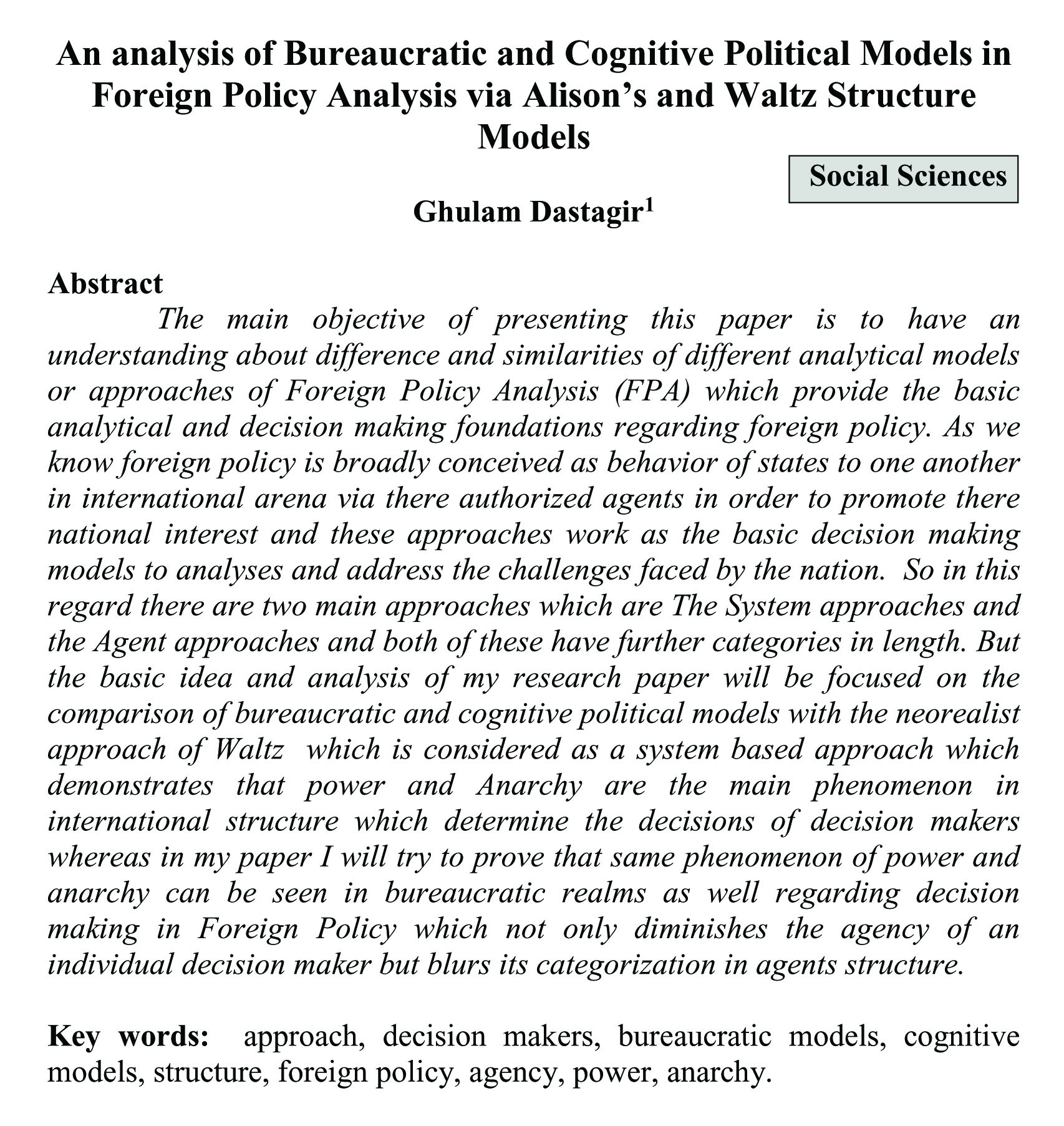 An analysis of Bureaucratic and Cognitive Political Models in Foreign Policy