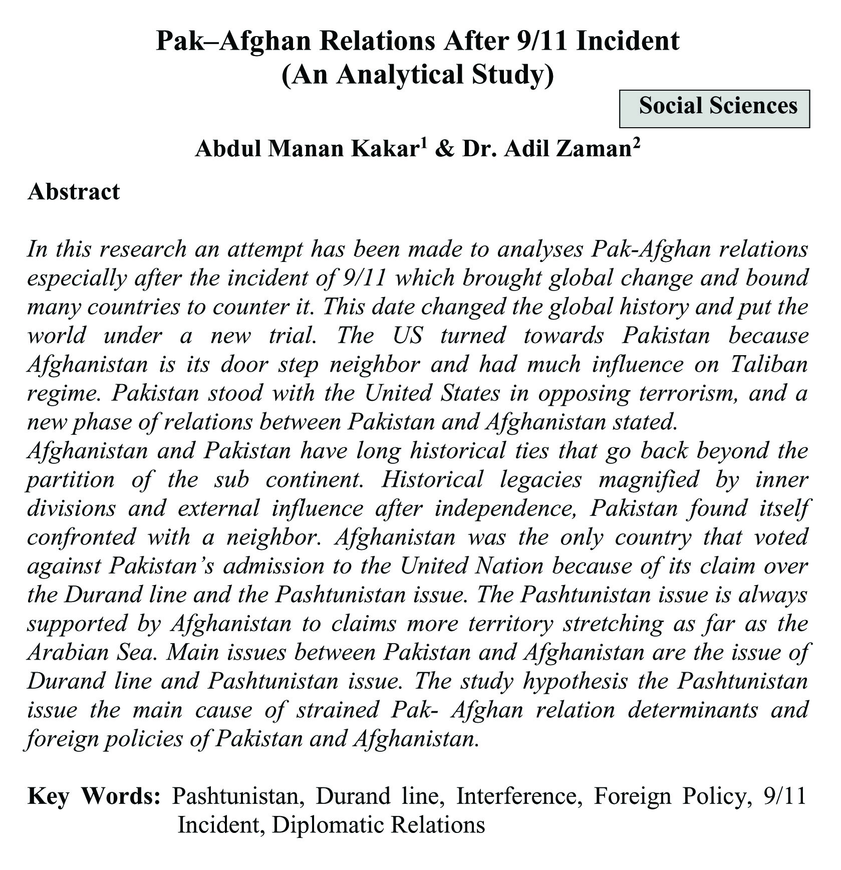 Pak-Afghan Relations After 9/11 Incident (An Analytical Study) (abstract)