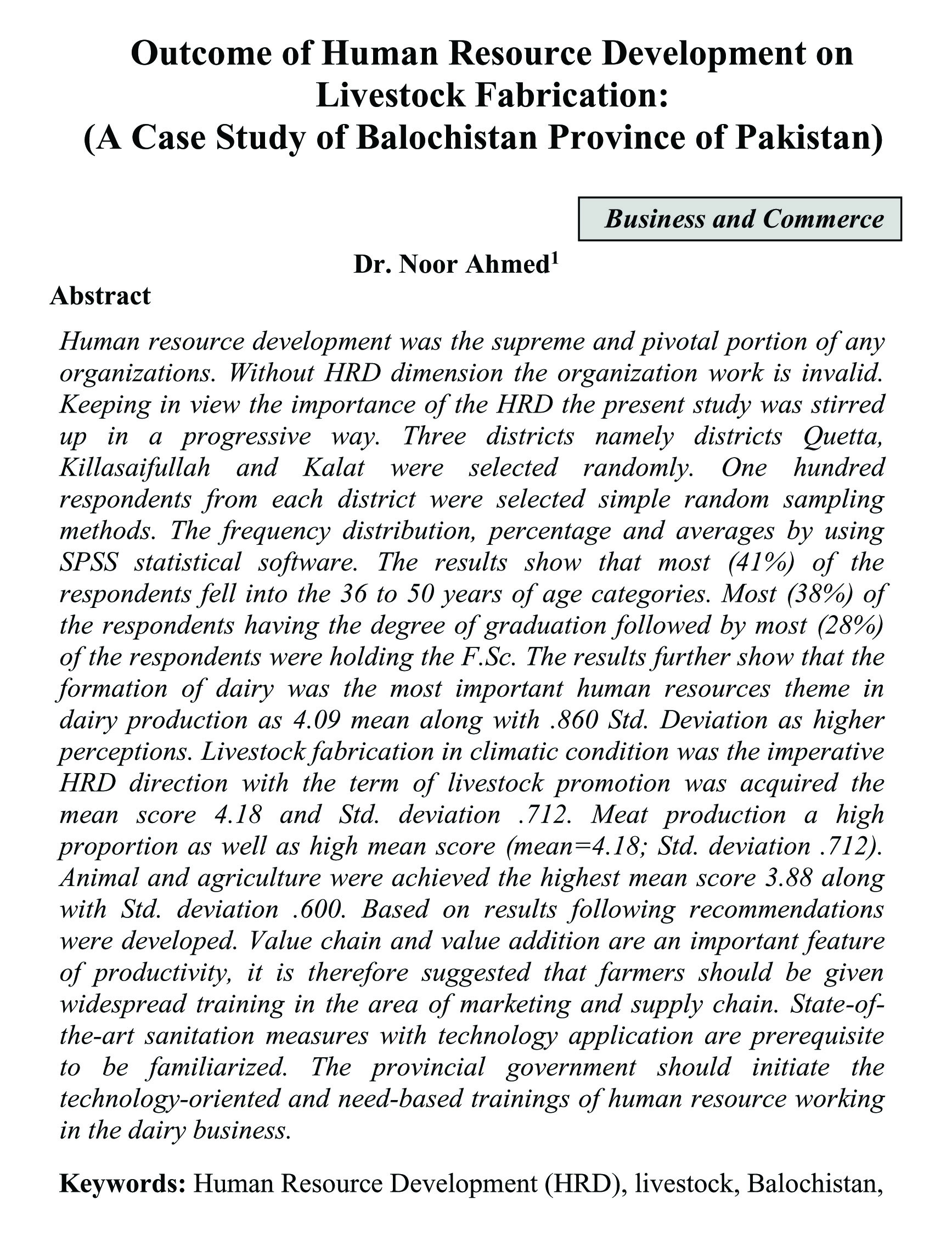 Outcome of Human Resource Development on Livestock Fabrication: (A Case Study of Balochistan Province of Pakistan)(abstract)