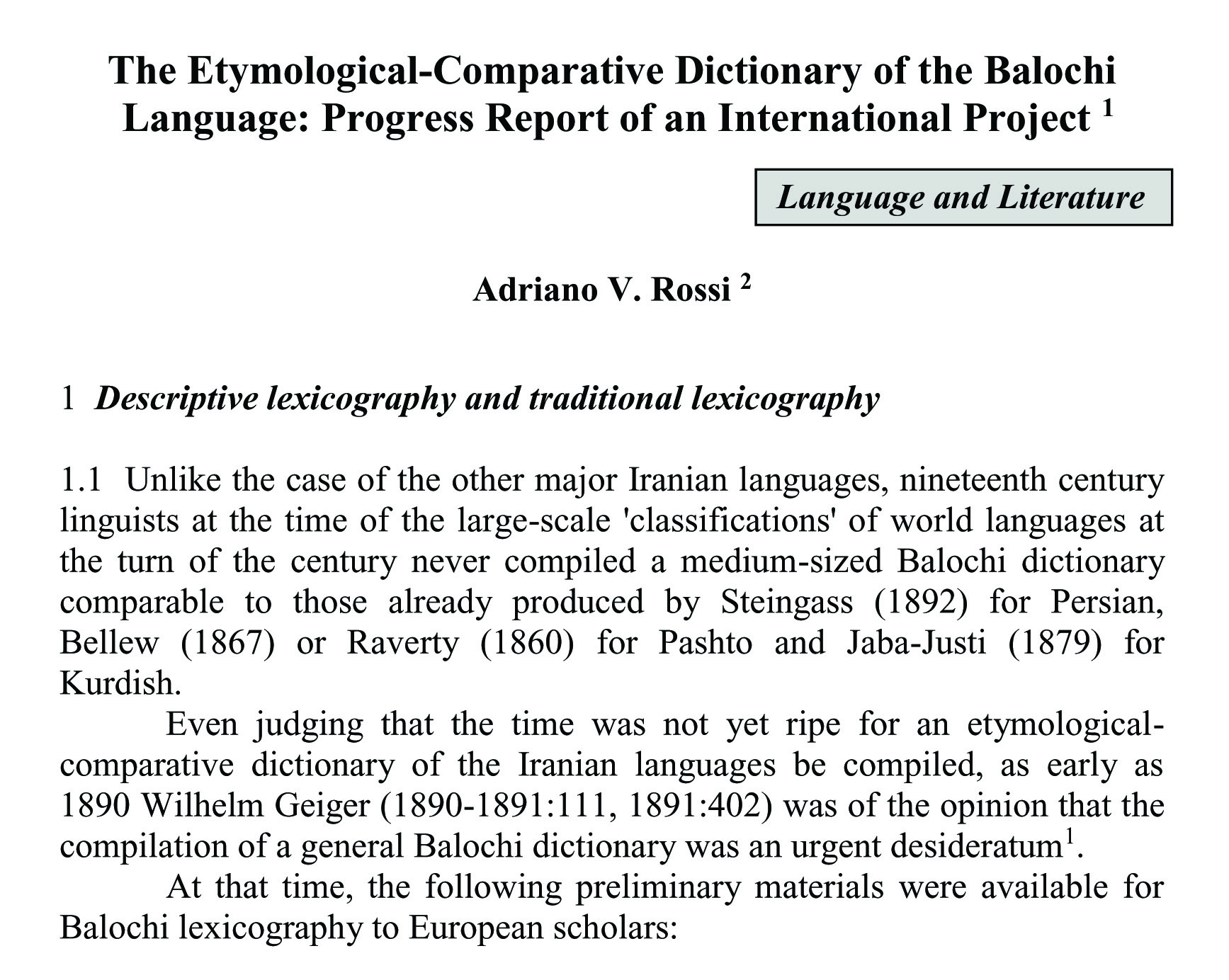 The Etymological-Comparative Dictionary of the Balochi Language: Progress Report of an International Project (abstract)