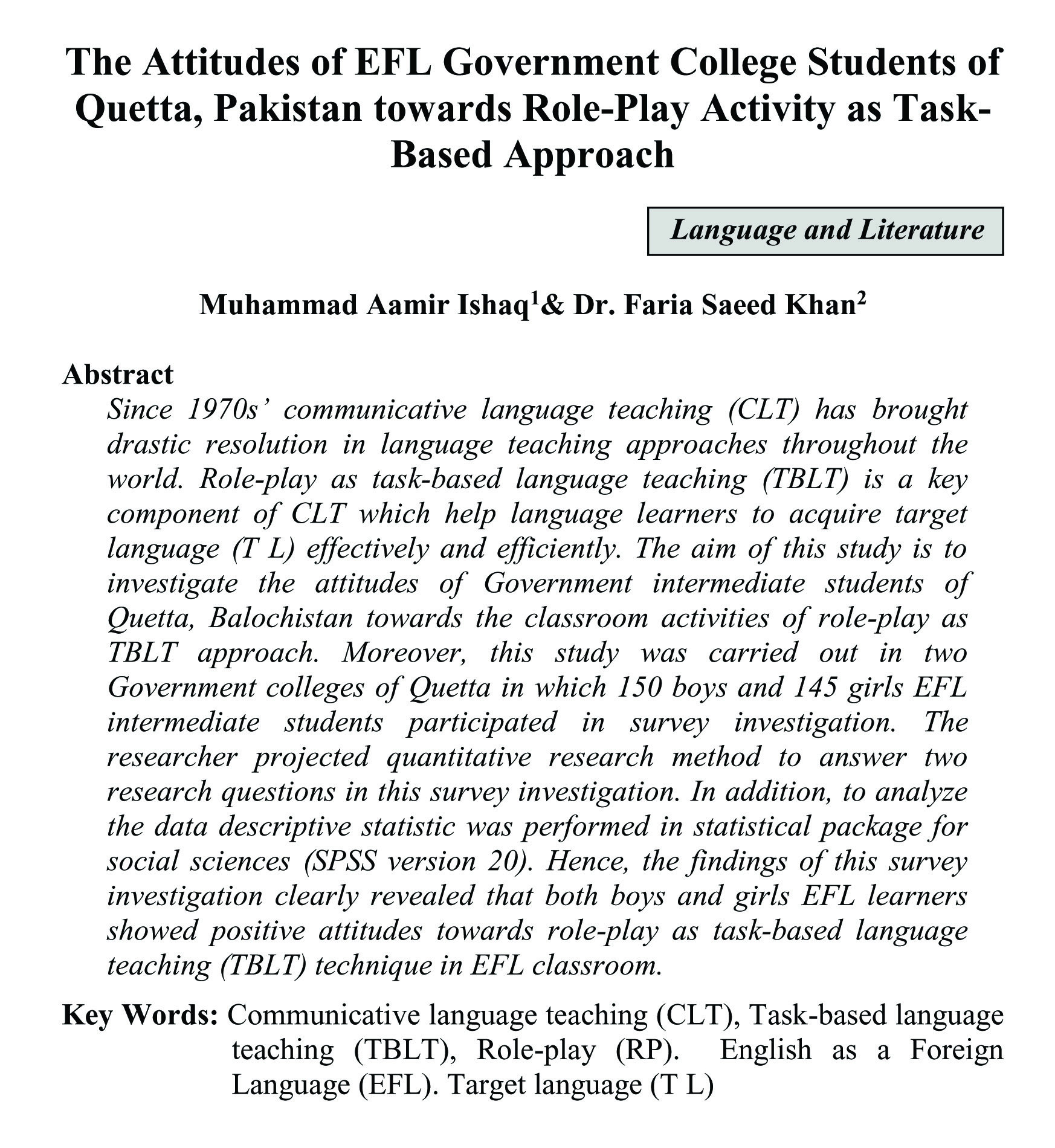 Government College Students of Quetta, Pakistan towards Role-Play Activity as