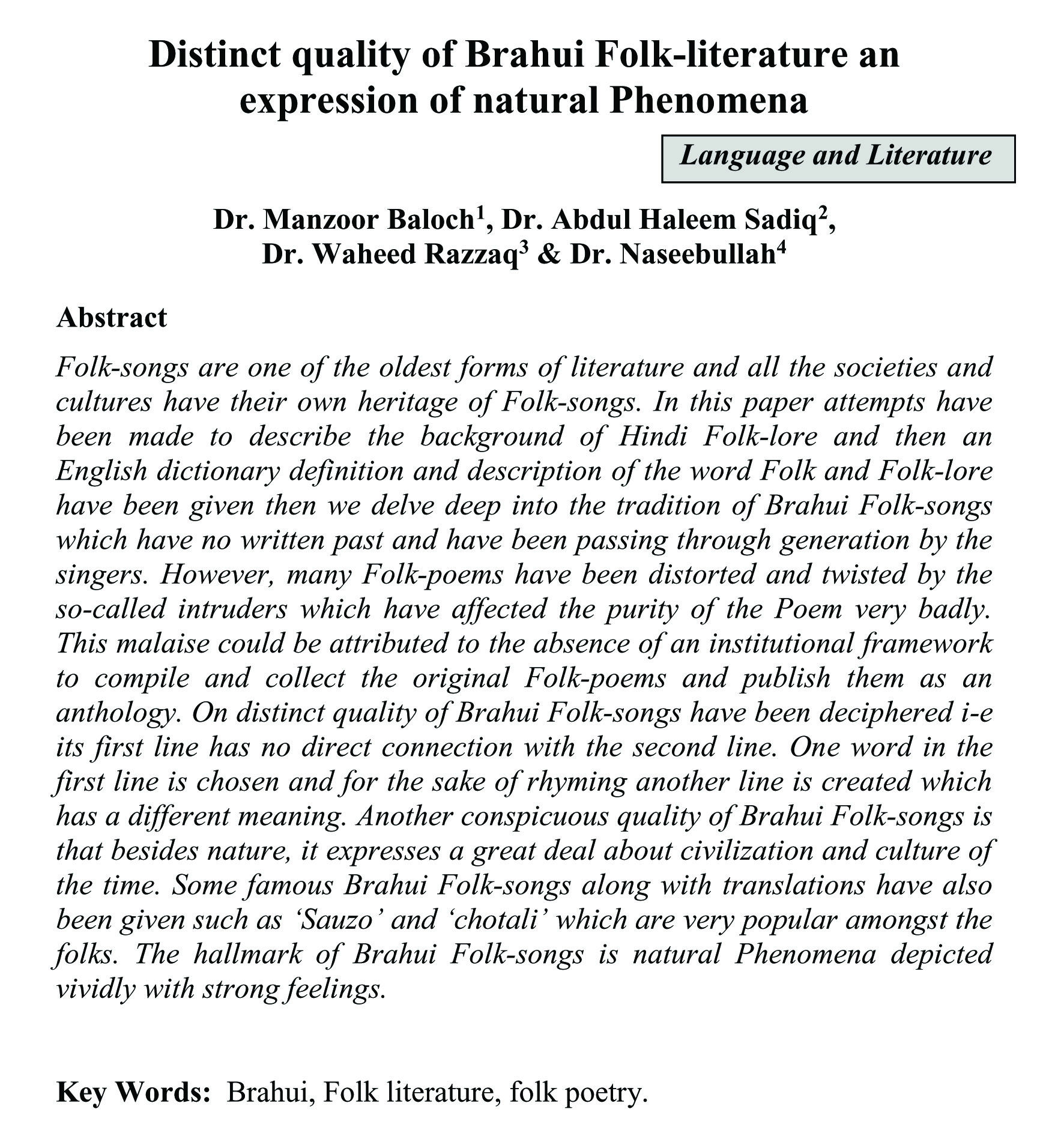 Distinct quality of Brahui Folk-literature an expression of natural Phenomena (abstract)