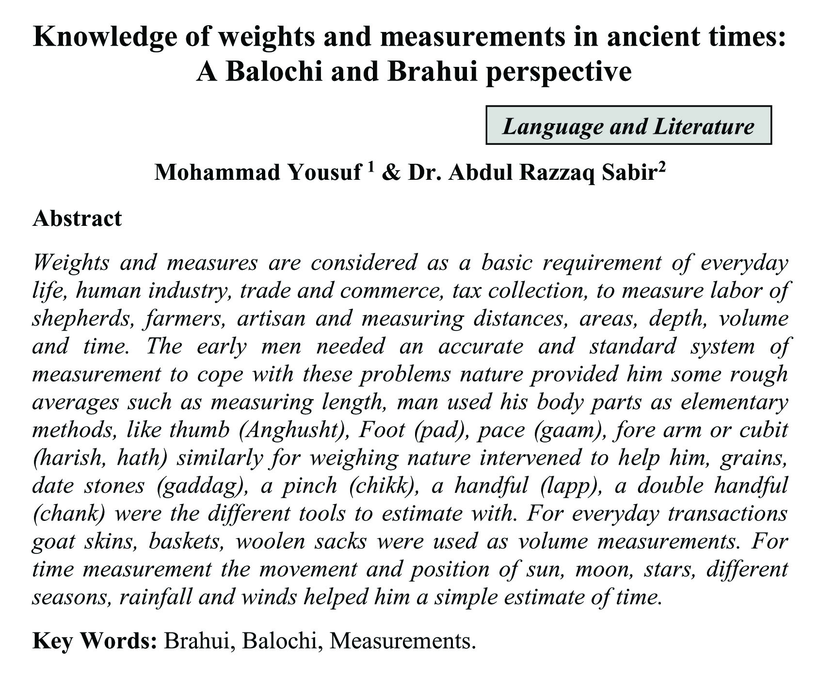 Knowledge of weights and measurements in ancient times: A Balochi and Brahui perspective (abstract)