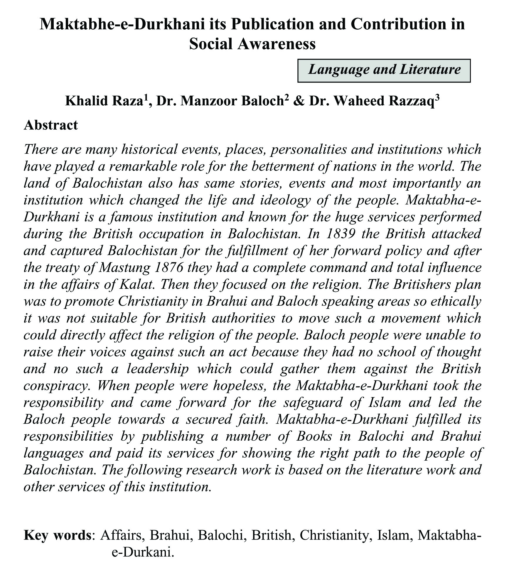 Maktabhe-e-Durkhani its Publication and Contribution in Social Awareness (abstract)