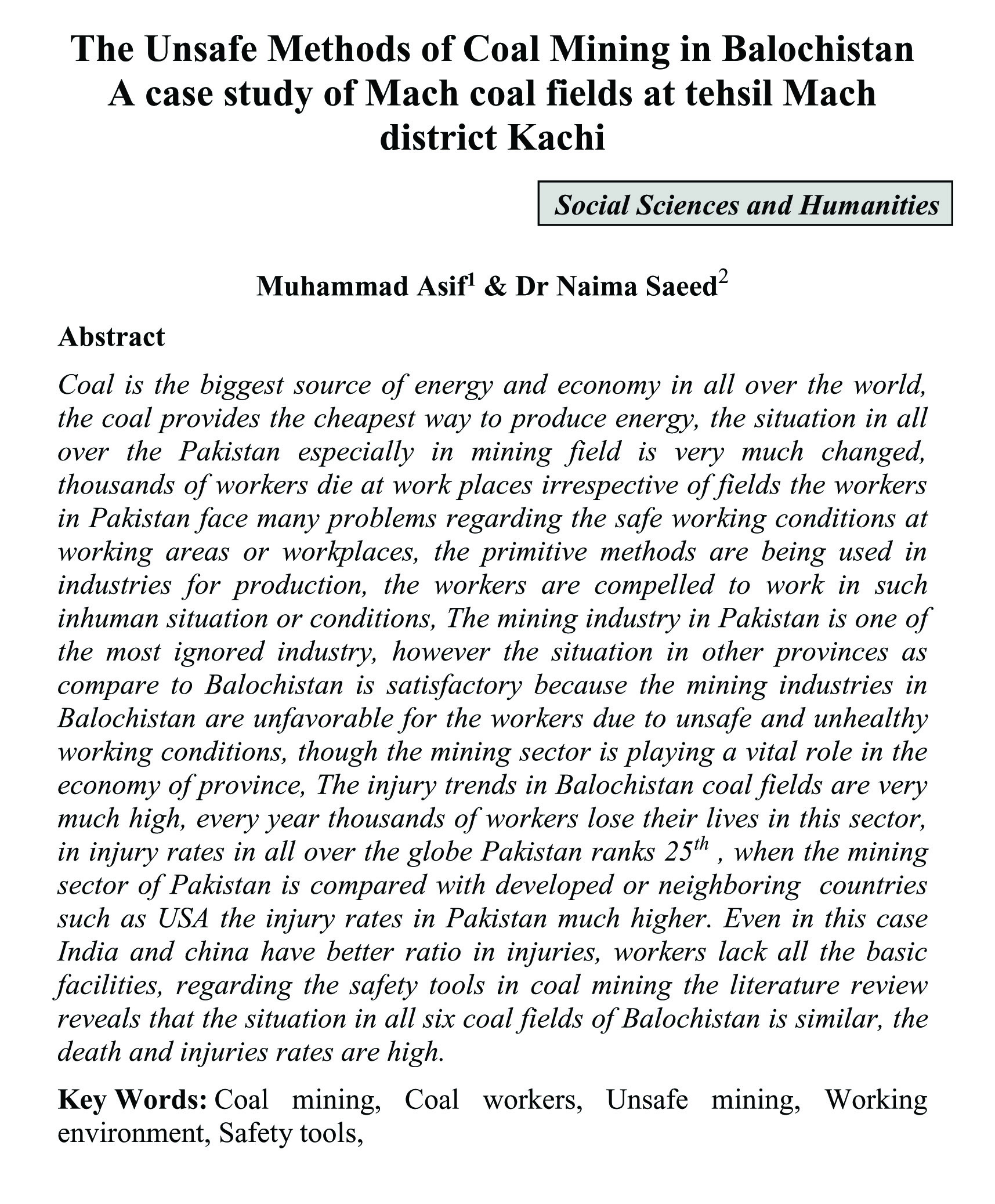 The Unsafe Methods of Coal Mining in Balochistan A case study of Mach coal fields at tehsil Mach district Kachi (abstract)