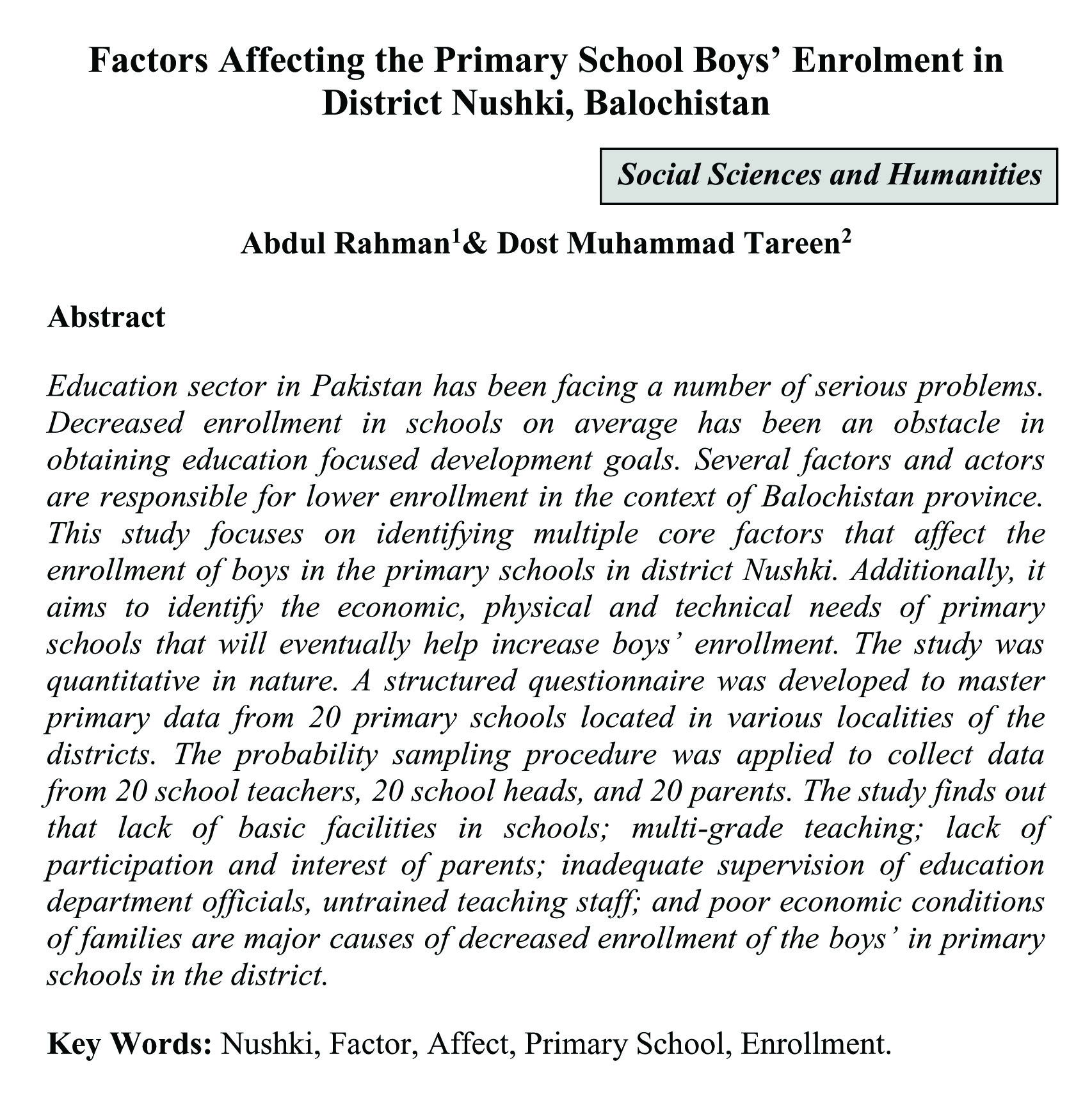Factors Affecting the Primary School Boys' Enrolment in District Nushki, Balochistan (abstract)