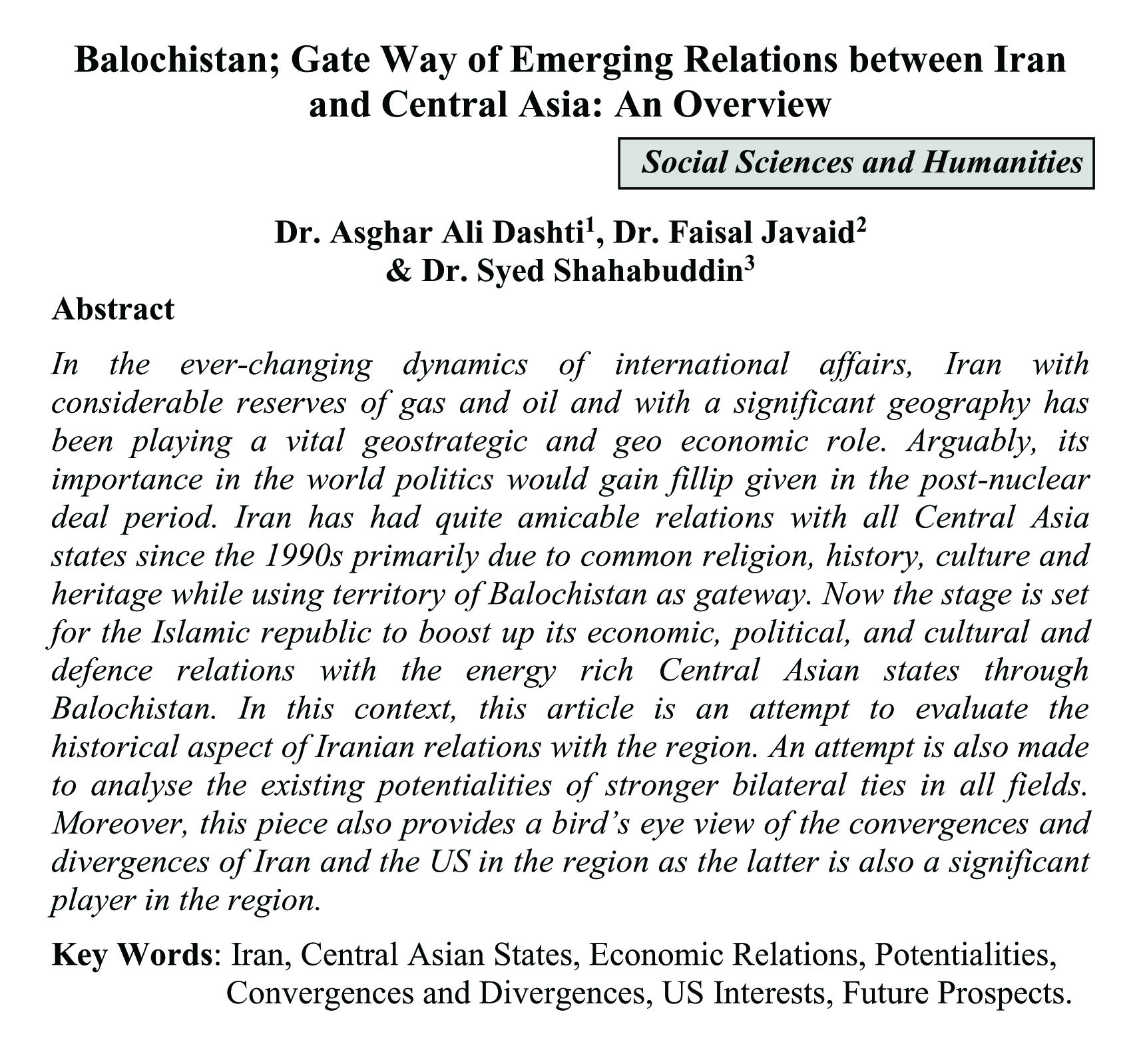 Balochistan; Gate Way of Emerging Relations between Iran and Central Asia: An Overview (abstract)