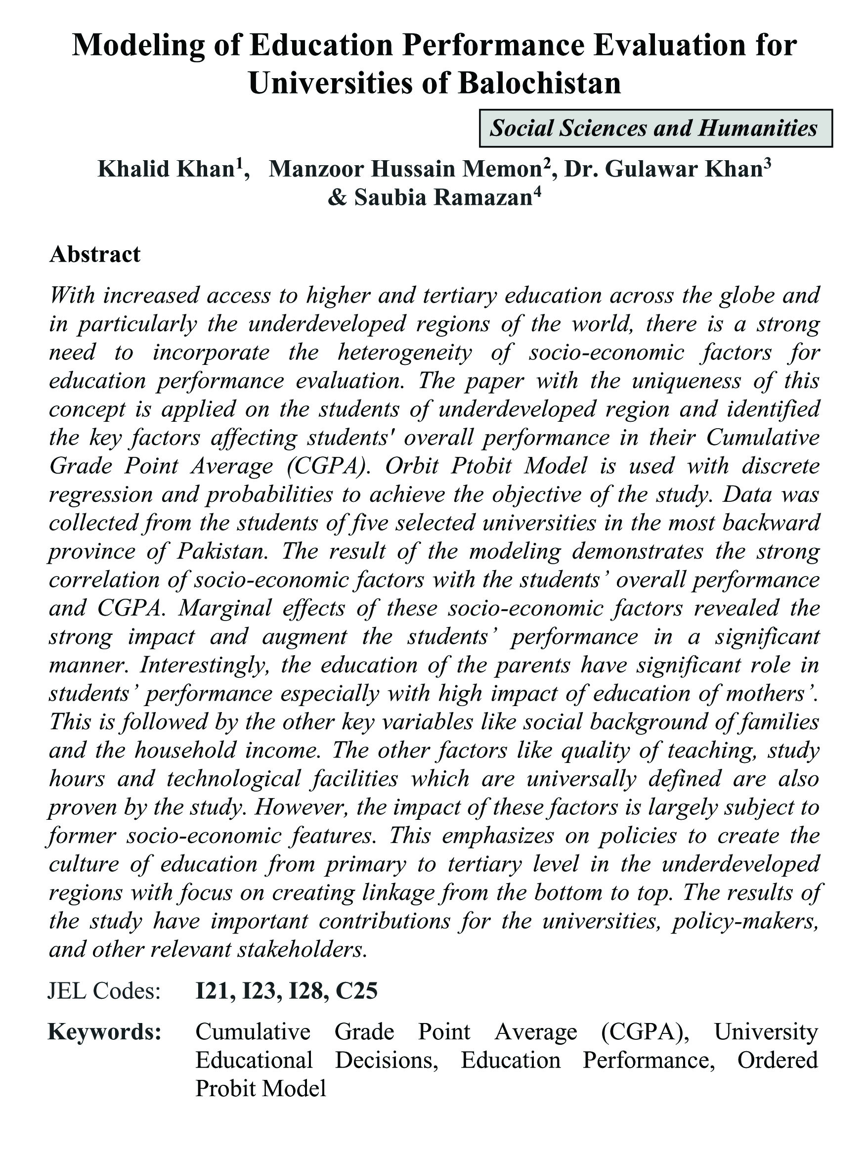 Modeling of Education Performance Evaluation for Universities of Balochistan (abstract)