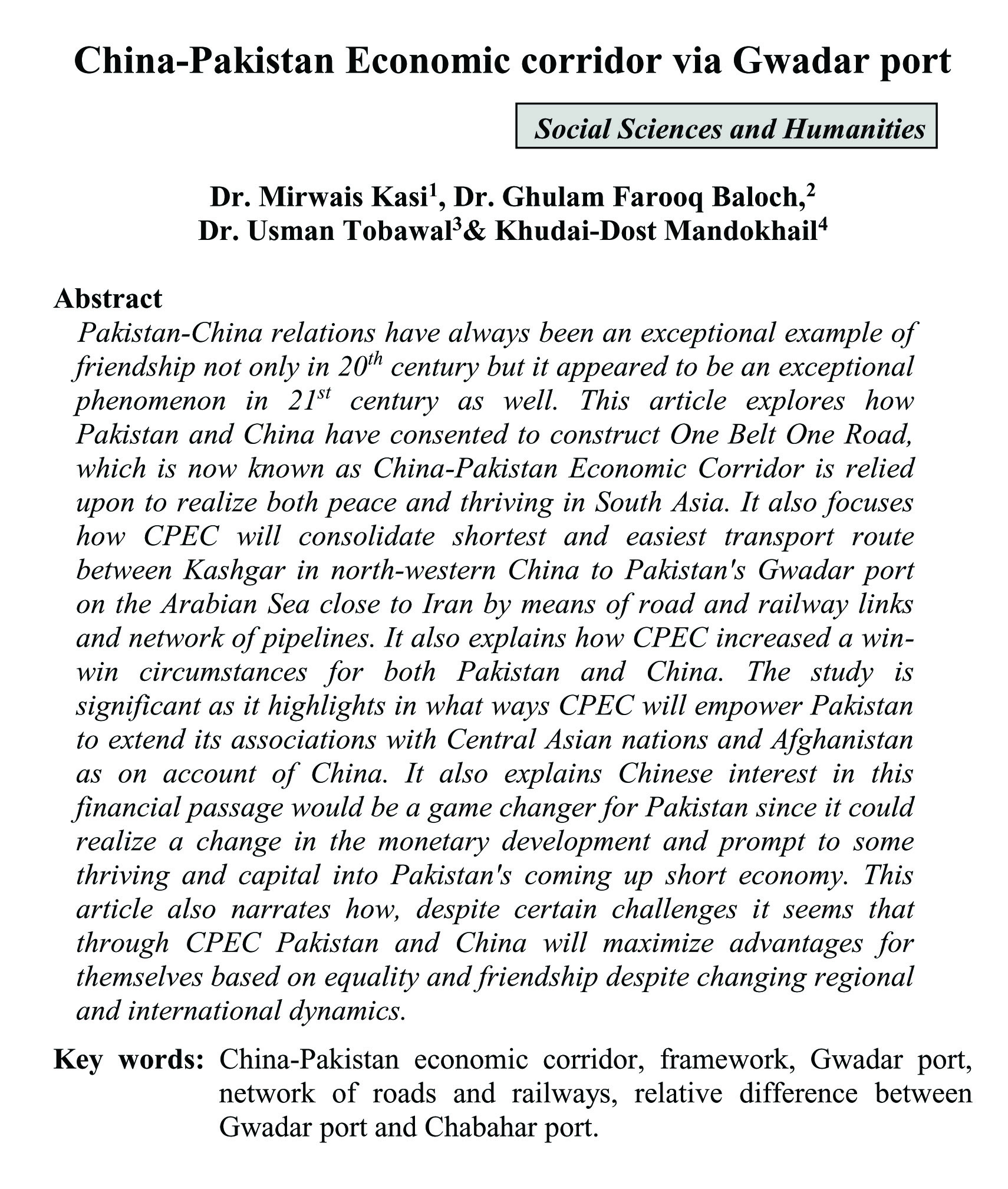 China-Pakistan Economic corridor via Gwadar port (abstract)
