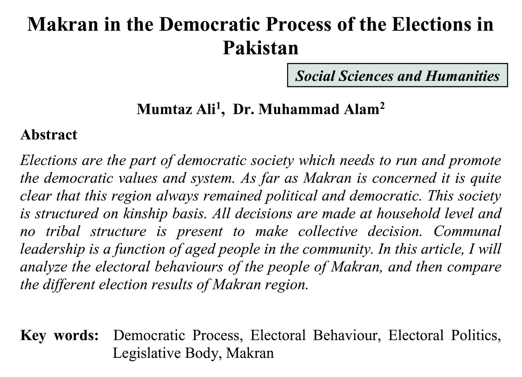 Makran in the Democratic Process of the Elections in Pakistan (abstract)