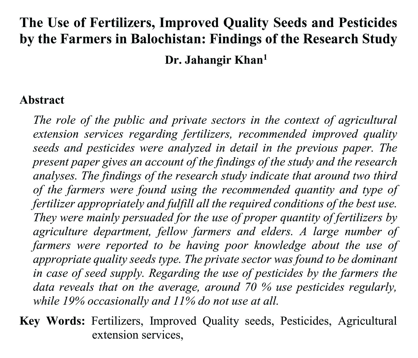 The Use of Fertilizers, Improved Quality Seeds and Pesticides by the Farmers in Balochistan: Findings of the Research Study (abstract)
