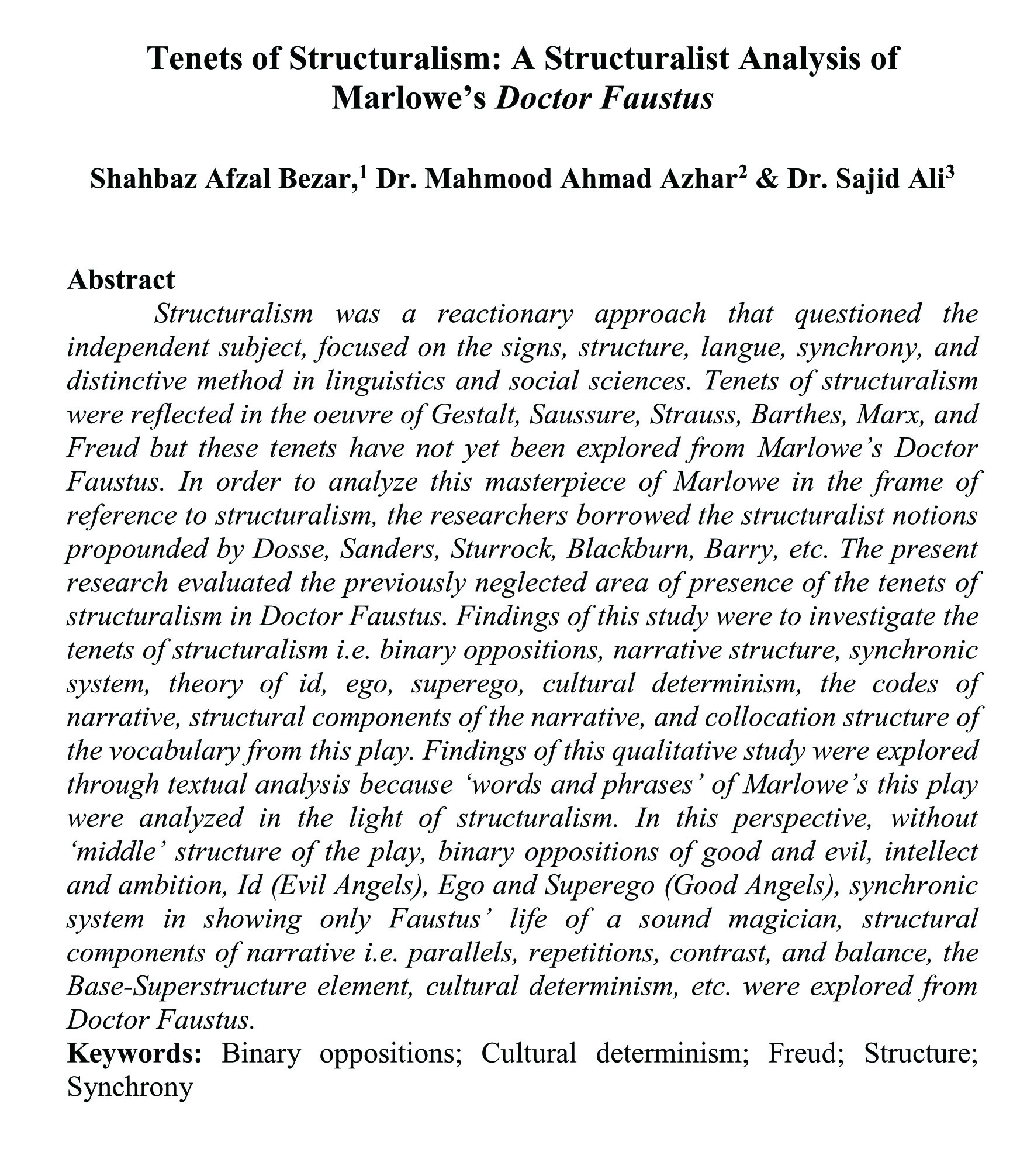 Tenets of Structuralism: A Structuralist Analysis of Marlowe's Doctor Faustus (abstract)