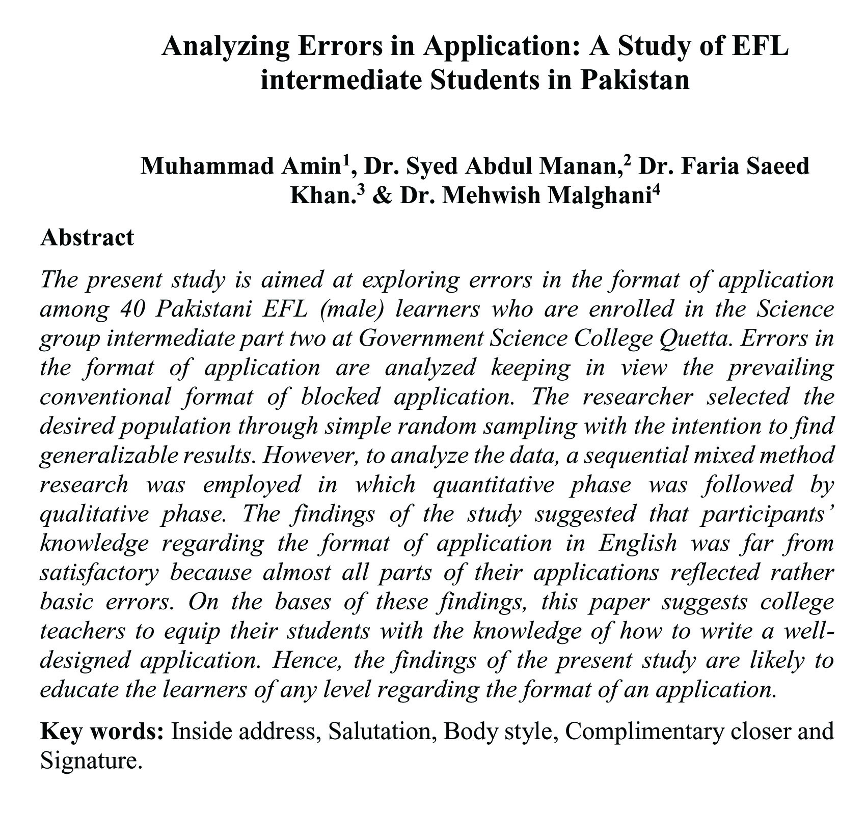 Analyzing Errors in Application: A Study of EFL intermediate Students in Pakistan (abstract)