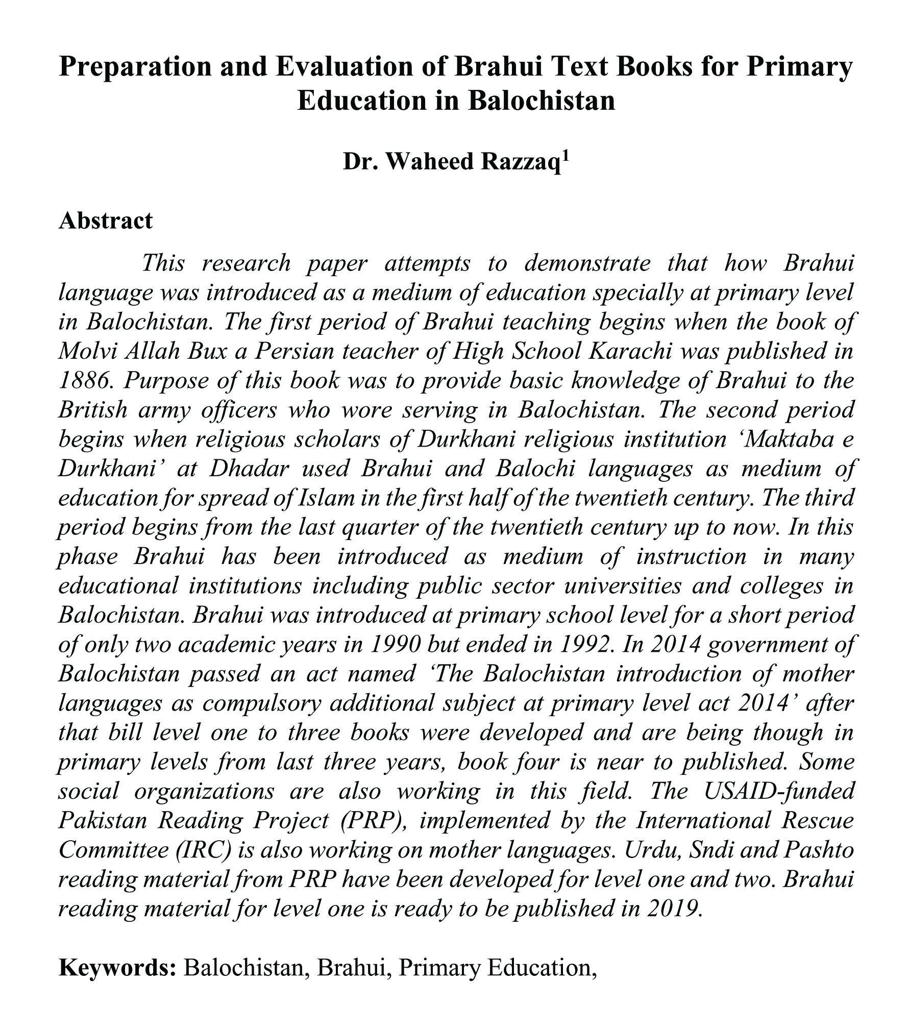 Preparation and Evaluation of Brahui Text Books for Primary Education in Balochistan (abstract)