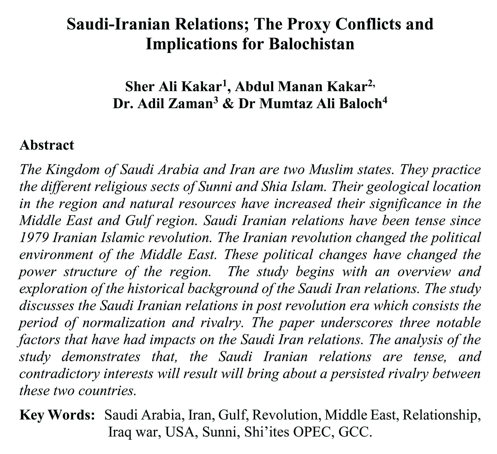 Saudi-Iranian Relations; The Proxy Conflicts and Implications for Balochistan (abstract)