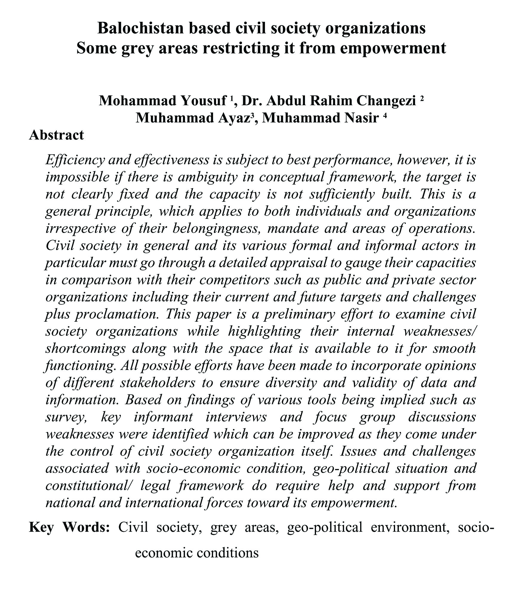 Balochistan based civil society organizations Some grey areas restricting it from empowerment (abstract)